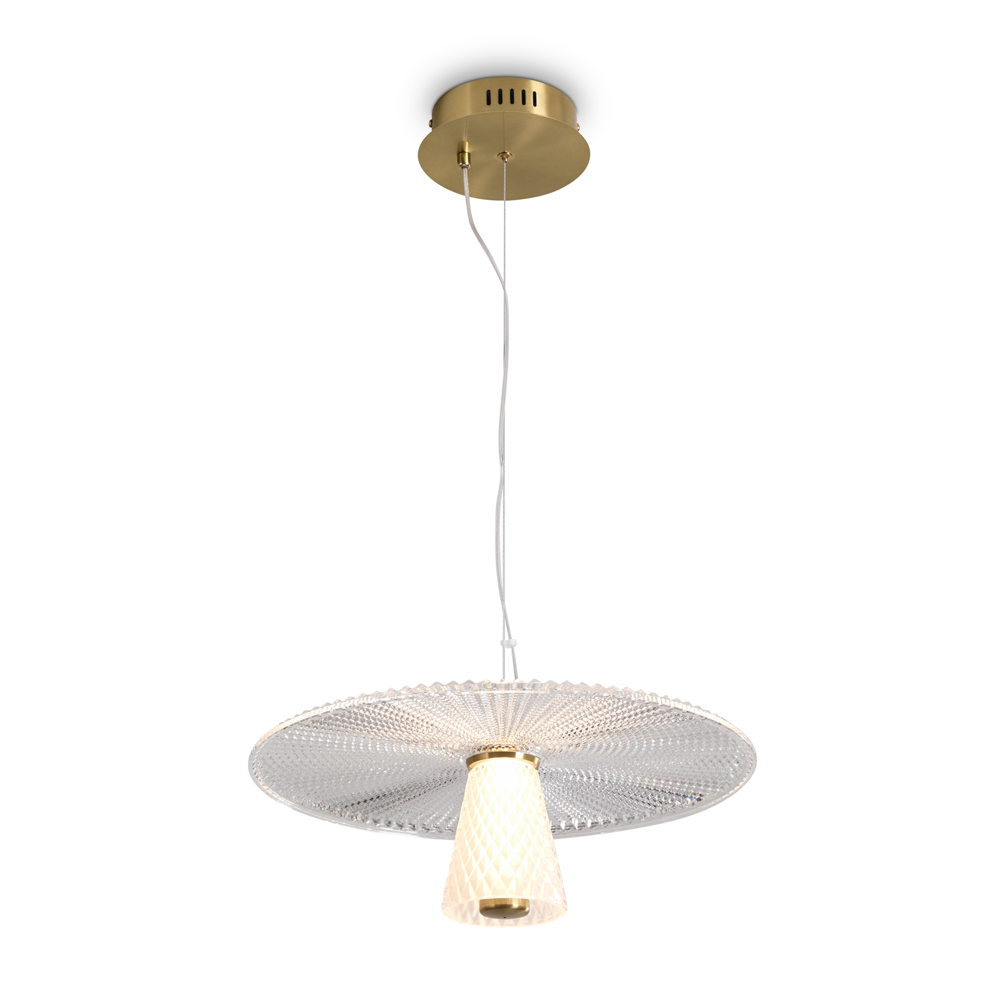 Серия Grail представлена подвесными светильниками с рельефным стеклом, имитирующим хрустальные грани в прозрачном и матовом покрытии. Арматура — металл латунного цвета. Источник света спрятан внутри рельефного стаканчика с узором «ромбик». Два варианта подвесов: с одним ярусом и с двумя, прекрасно сочетаются и придают изюминку даже самому минималистичному интерьеру. Плафоны выполнены из прозрачного акрила, имитирующего рельефное стекло. Оснащены LED источником света 3000K. Сочетают классическую эстетику хрустальных ваз с современными технологиями, создавая элегантное и эффективное освещение.
