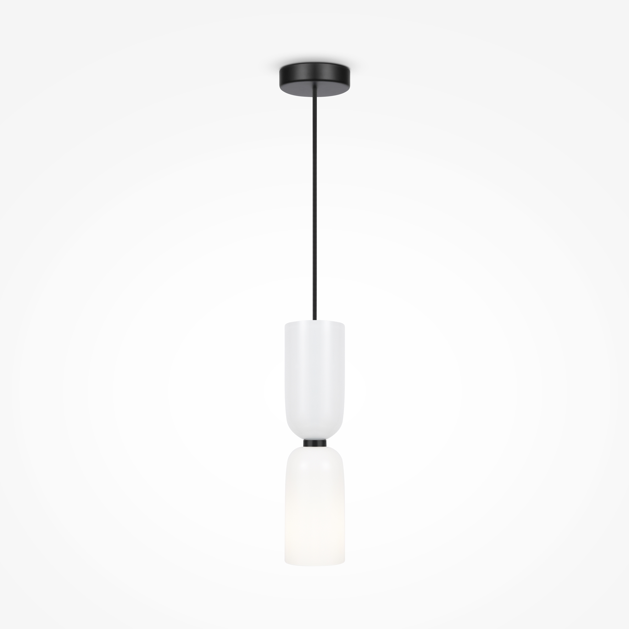 Металлическая арматура, цвет — черный. Светильники стилизованы под форму песочных часов с обтекаемой формой. Керамические элементы с глянцеовй глазурью. Подвесные светильники с плафонами из белой керамики с прозрачным, черно-белым, золото-белым и белым стеклом. Регулируемая высота подвесных светильников.