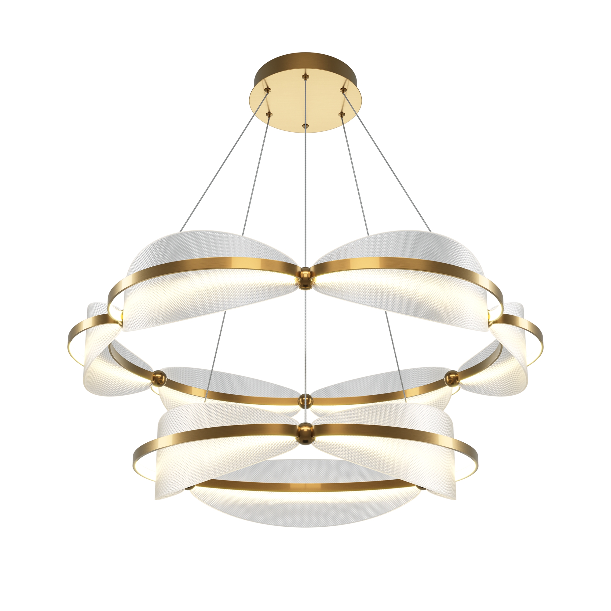 Материал арматуры — металл, цвет — латунь. Декоративные элементы из прозрачного фактурного акрила. LED источник света с цветовой температурой 3000К. Подвесные светильники — регулируемый провод длиной 3 метра. Настольная и напольная модель с функцией диммирования.