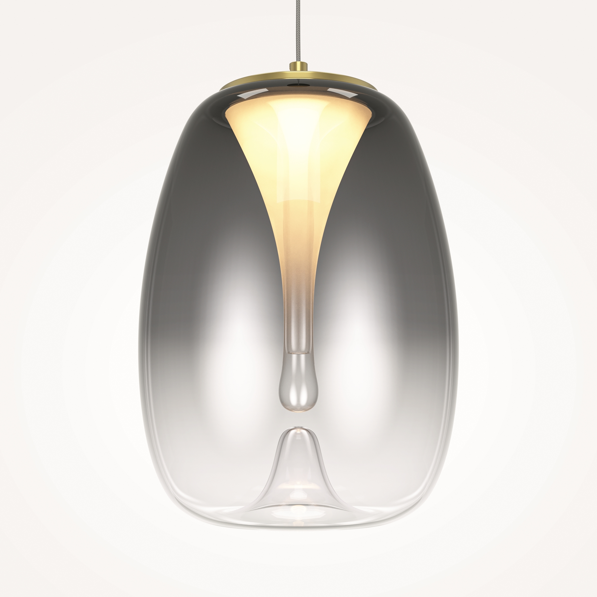 Цвет арматуры — сатинированное золото. Плафоны из двойного стекла. Внешние плафоны в двух цветах: прозрачный и гальванизированный серый с эффектным градиентом — придают освещению глубину и насыщенность. LED источник света с цветовой температурой 3000K. Провод подвесных светильников регулируемый — длина 3 метра. Идеальны для помещений с высокими потолками.