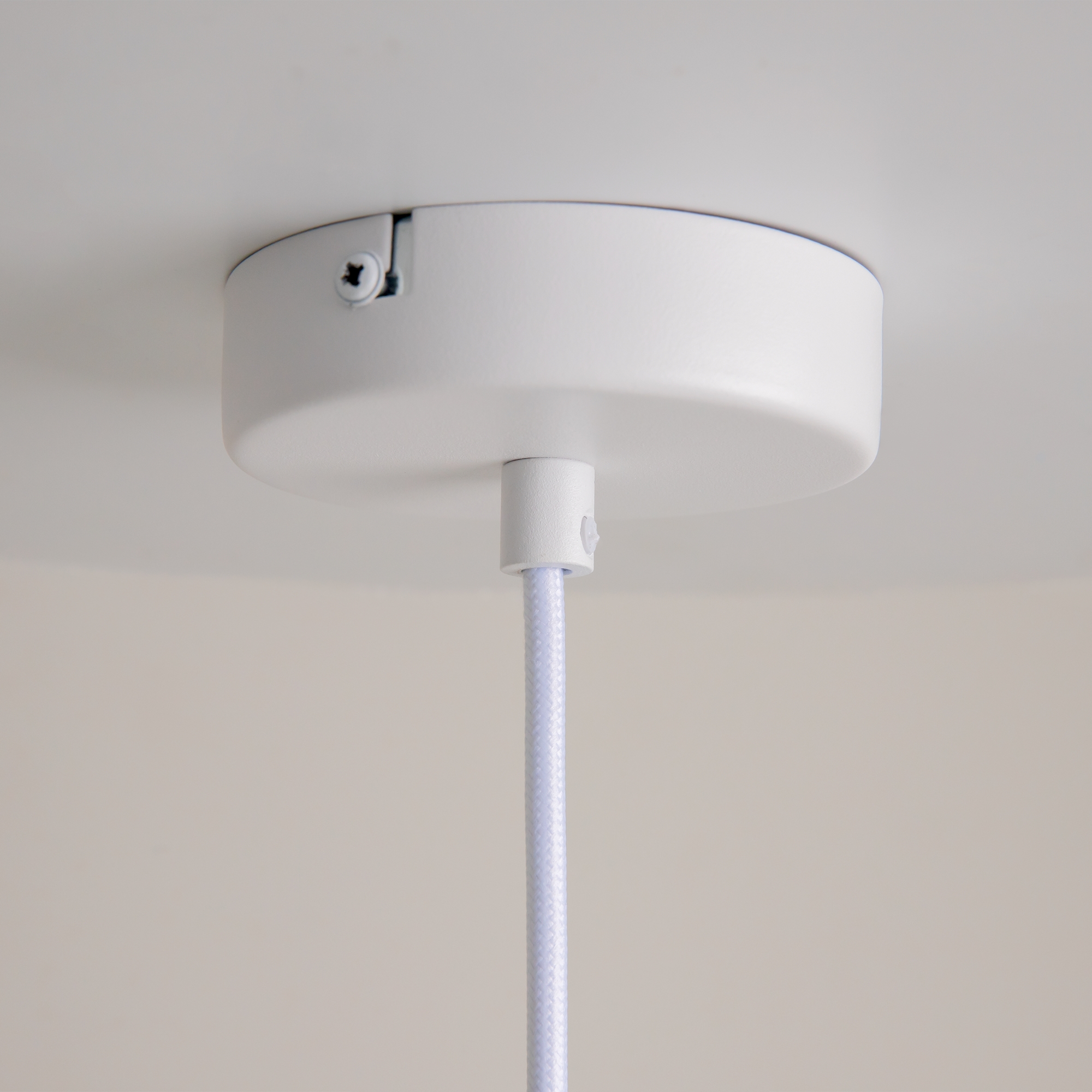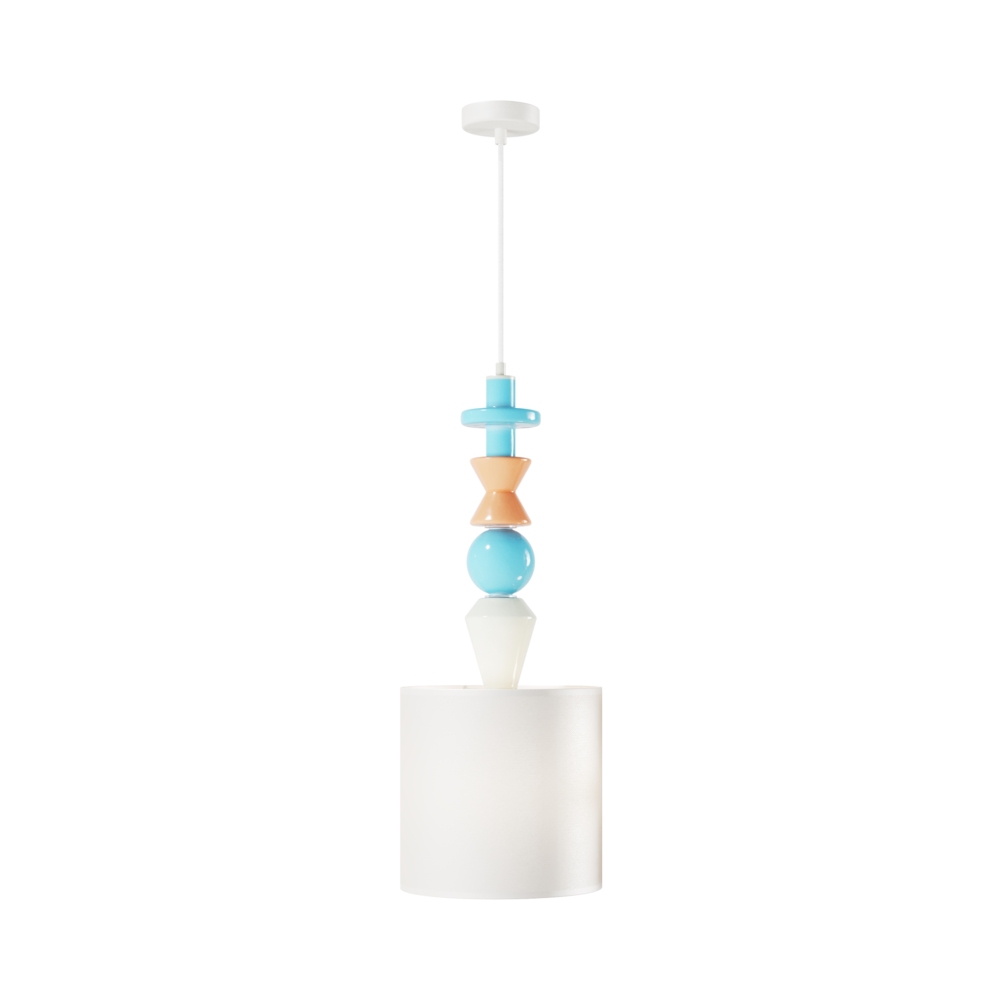 Арматура из металла, цвет — белый. Абажур выполнен из натуральной ткани, цветные декоративные элементы в пастельных тонах — из керамики. Белый абажур имеет классическую цилиндрическую форму, ткань дает мягкий рассеянный свет. Светильники комплектуются сменными лампами с цоколем Е27 (не входят в комплект). Провод подвесного светильника можно регулировать по длине. Декор напоминает стилистику крафтового искусства