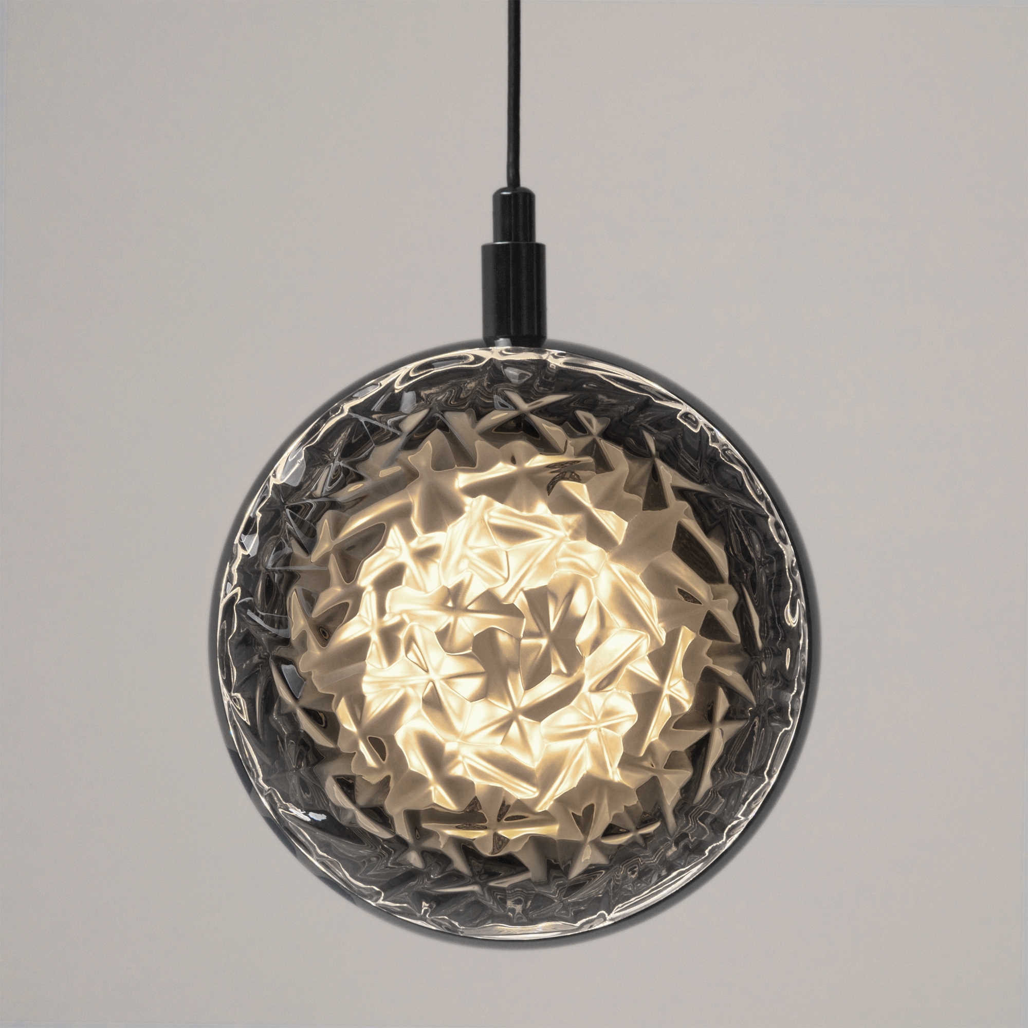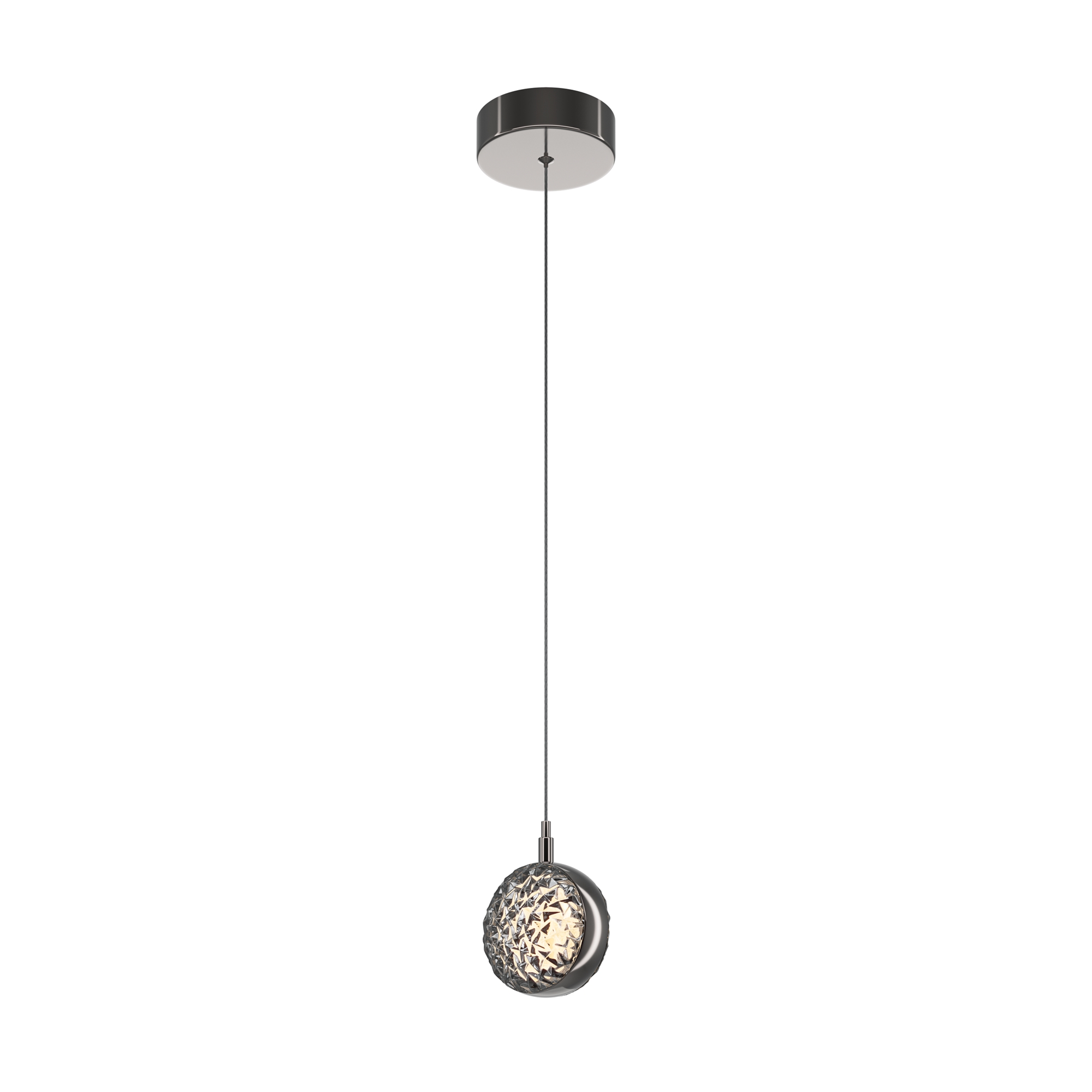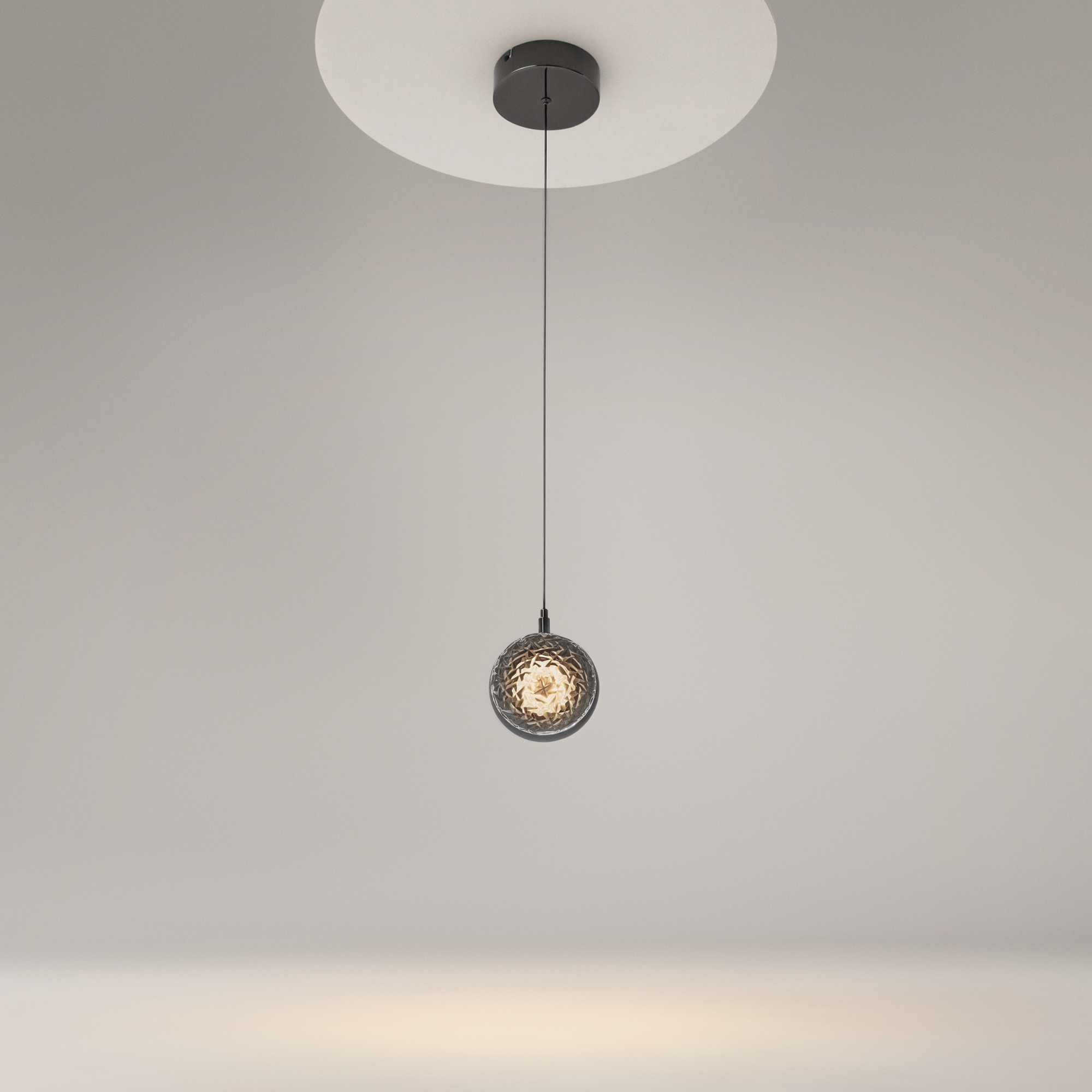 Два цветовых сочетания: сатинированная арматура из металла в цвете латунь в комбинации со стеклянными плафонами янтарного оттенка или трендовый черный хром с глянцевым финишем в сочетании с тонированными светло-серыми плафонами. Источник света: LED. Цветовая температура 3000К, угол рассеивания 120 градусов. Провод длиной 3 м можно регулировать по высоте — светильник подходит для помещений с высокими потолками.