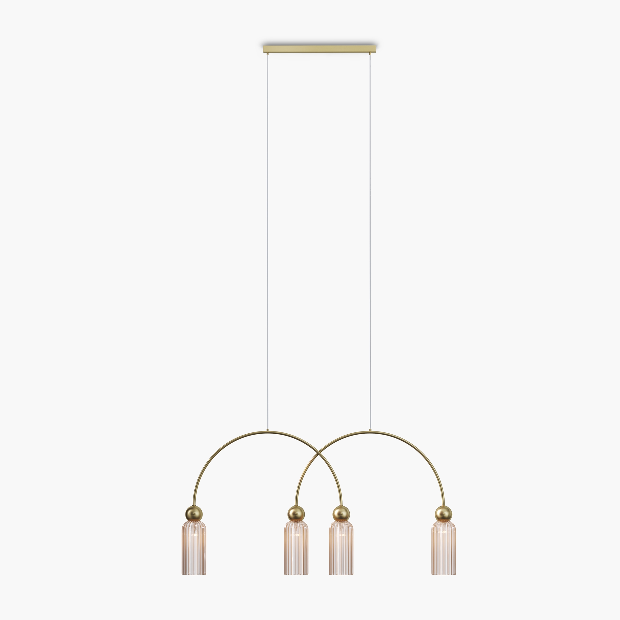 Металлическая арматура в цвете золота.Стеклянные плафоны нескольких цветов: коньячный, белый, серый. Рифленая поверхность стекла усиливает световые эффекты. Сменные источники света. Высота подвесных светильников регулируется сегментами штанги или с помощью трехметрового провода. Серия может использоваться в помещениях с высокими потолками. Доступны подвесные и настенные модели для создания разнообразных световых композиций.