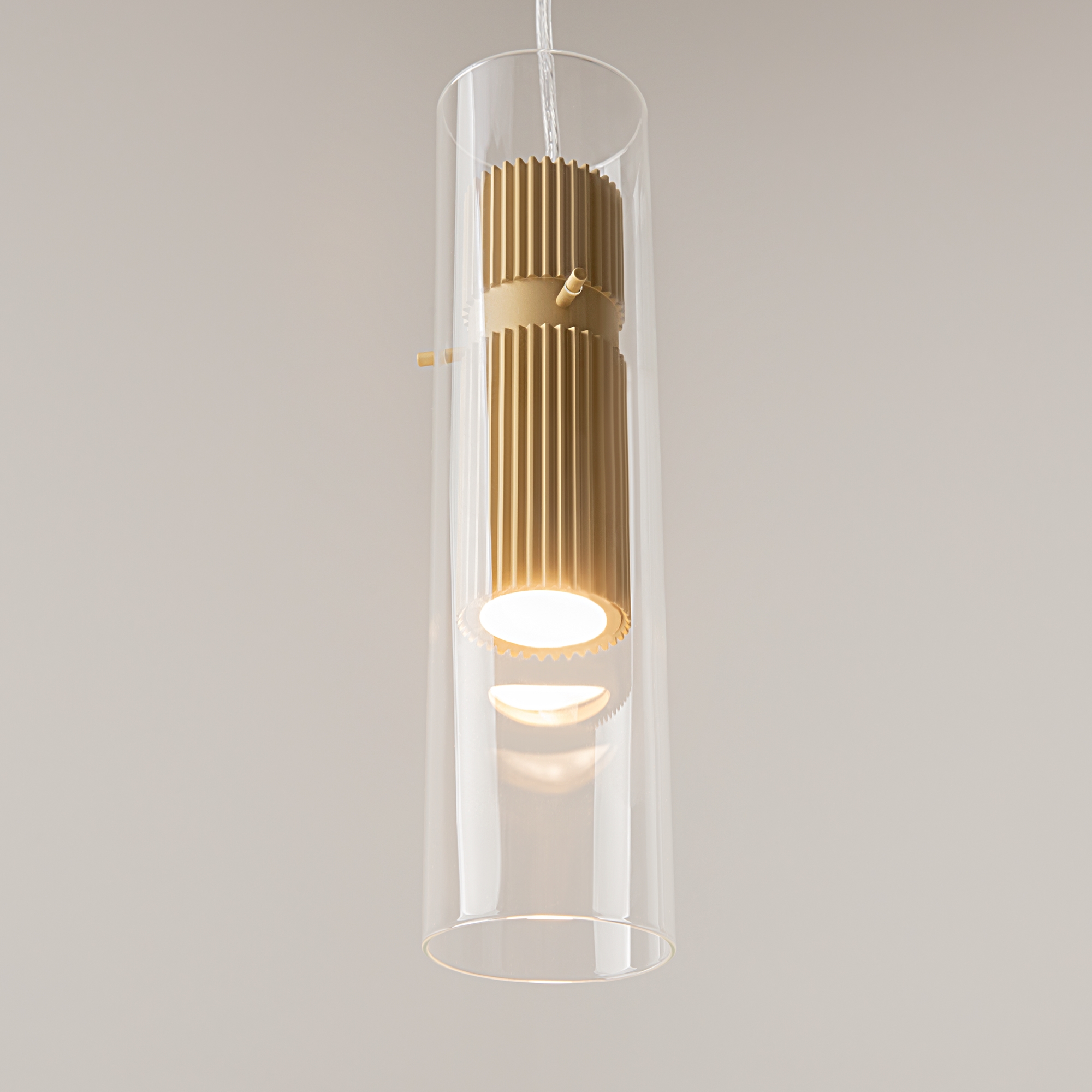 Материал арматуры — алюминий. Порошковое окрашивание в три цвета: матовый черный, матовый белый, матовое золото. Плафон с трендовой рифленой фактурой. Подвесные модели с внешним стеклянным элементом. Яркий направленный свет.