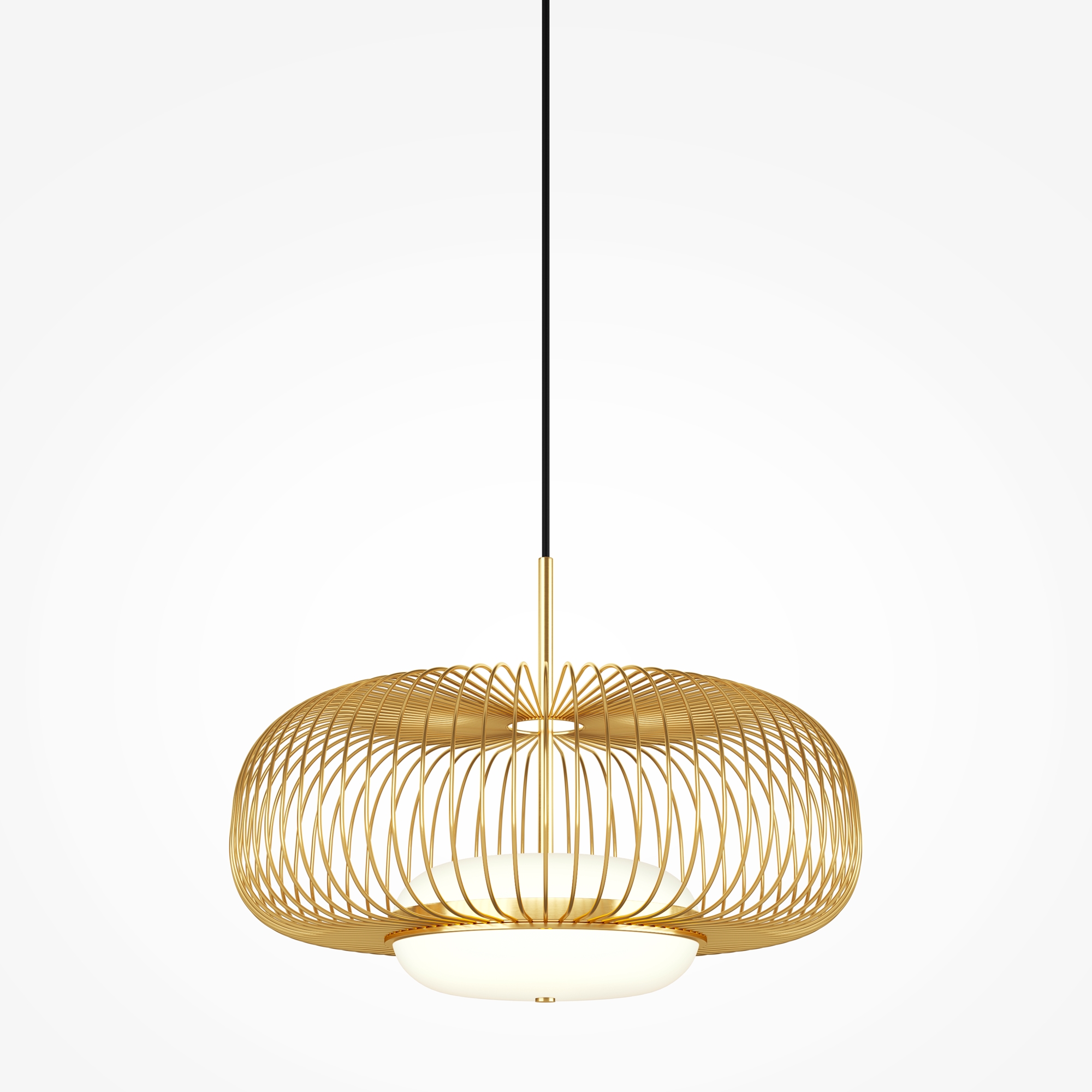 Цвет арматуры — латунь. Материал арматуры — металл. Абажур — каркас из проволоки, стекло. Оригинальный дизайн с эффектом левитации. Стеклянный рассеиватель со специальным выступом для крепления проволочного плафона. Два типа подвесных светильников: компактные со сменными лампами и крупный с LED-модулем для двунаправленного освещения. Провод длиной 3 метра для высоких потолков. Регулируемая высота подвеса. Универсальный дизайн для неоклассики, эклектики и фьюжн.
