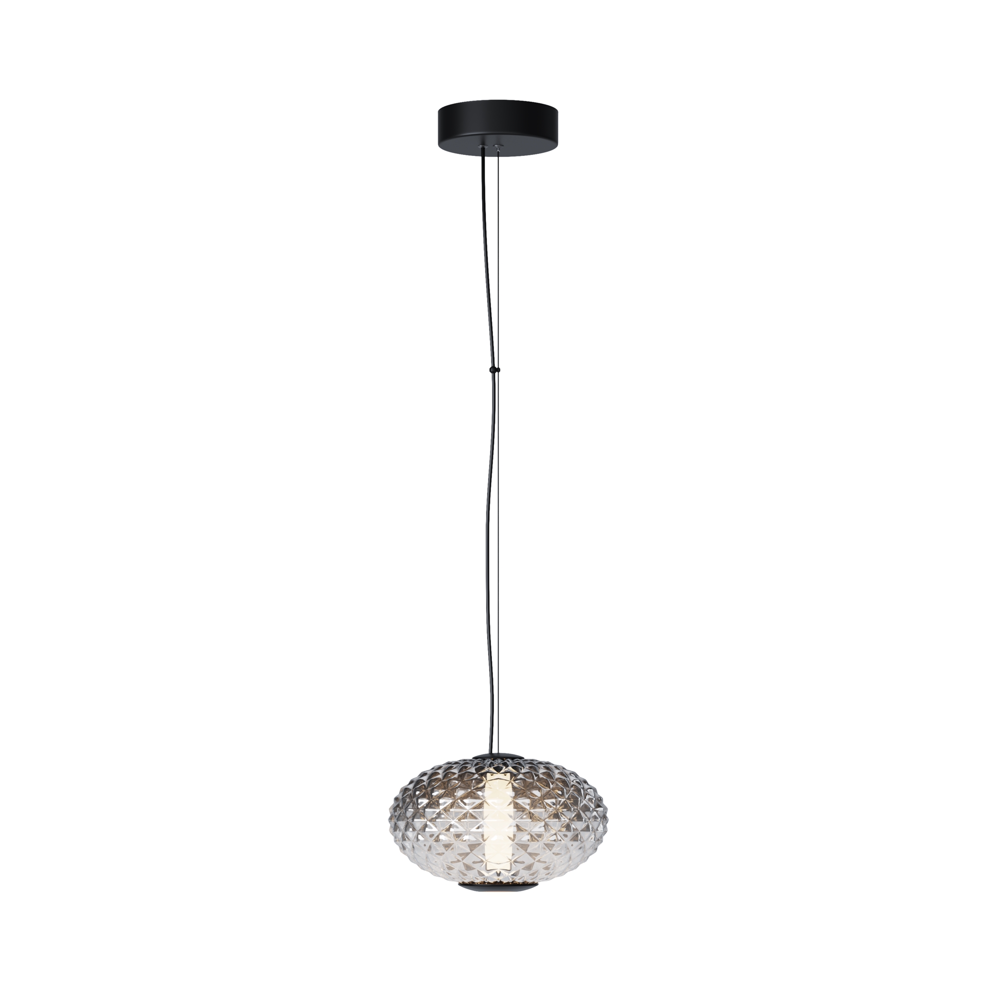 Подвесные светильники серии Bruma представлены в двух дизайнах: арматура глянцевый хром с белым стеклянным плафоном с нанесённым изнутри рельефом; черная арматура с антибликовым покрытием и черный плафон с наружным рельефом. Градиент на стекле от белого или черного к прозрачному. LED-источник света (3000K) имеет два направления: рассеянный и направленный. Подвесные светильники Bruma дополнят большинство современных интерьеров как в качестве одиночного акцента, так и в композиции друг с другом.