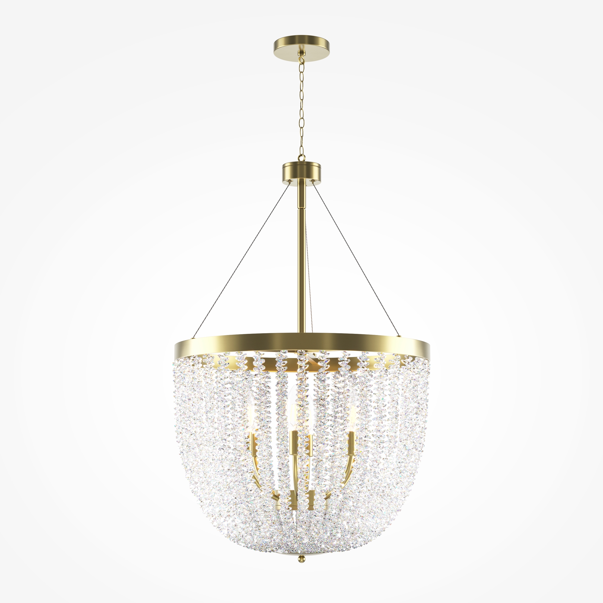 Серия Intrigue включает потолочные и подвесные светильники. Арматура: металл цвета сатинированной латуни. Декоративные элементы: нити из множества мелких хрусталиков. Цоколь: E14. Высота потолочного светильника всего 412мм, длина цепи подвесной люстры – 3м. Хрусталь создает сложную игру бликов. Классический дизайн в современном исполнении. Предназначен для создания акцентного освещения в интерьерах классического и современного стилей. Рекомендуется для гостиных, столовых, спален и кабинетов.