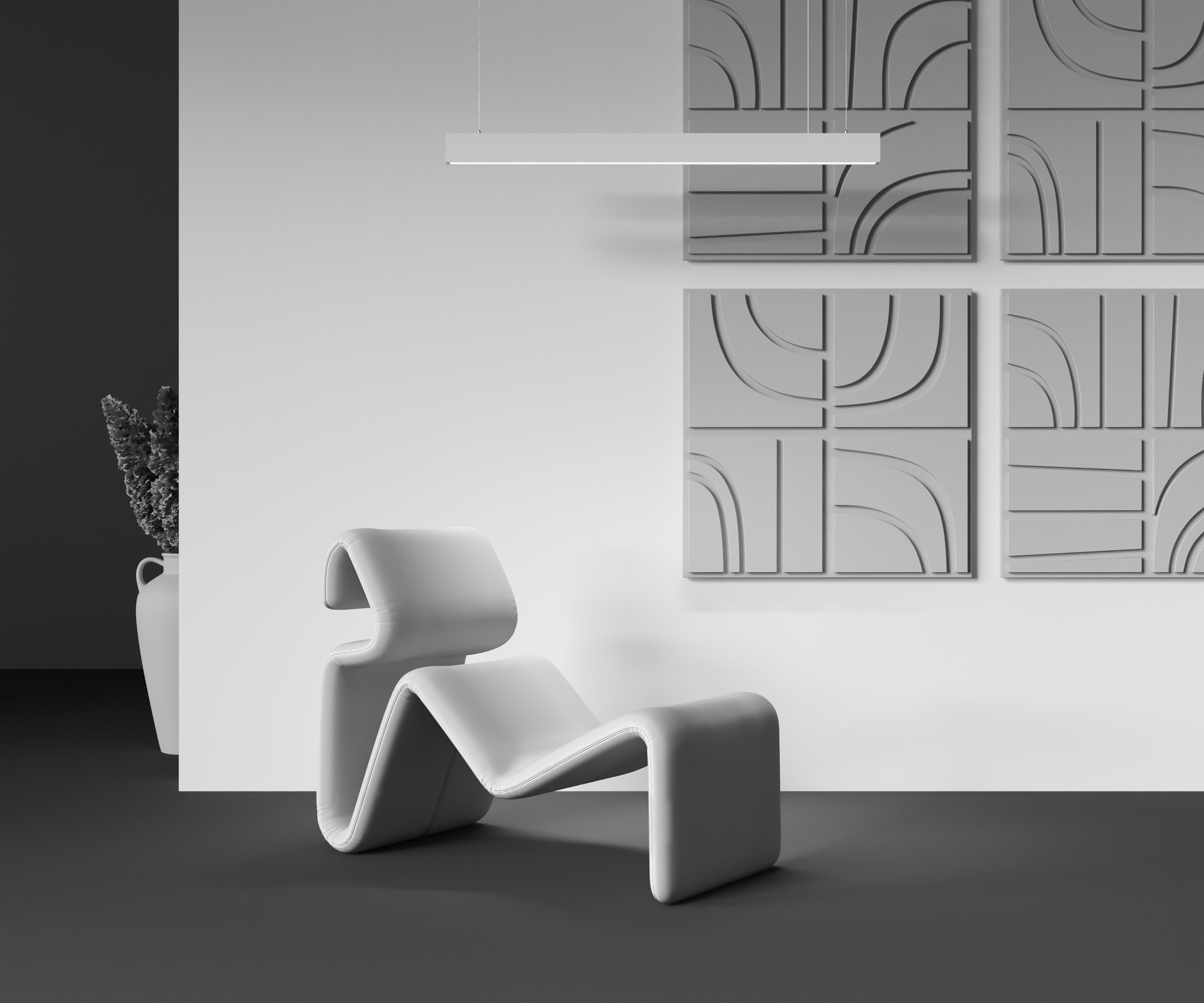 Подвесной светильник для коммерческих помещений. Корпус: металл (черный/белый). Механический/сенсорный переключатель цветовой температуры (2700K/3000K/4000K). Угол рассеивания 100°. CRI >90. Для основного освещения.