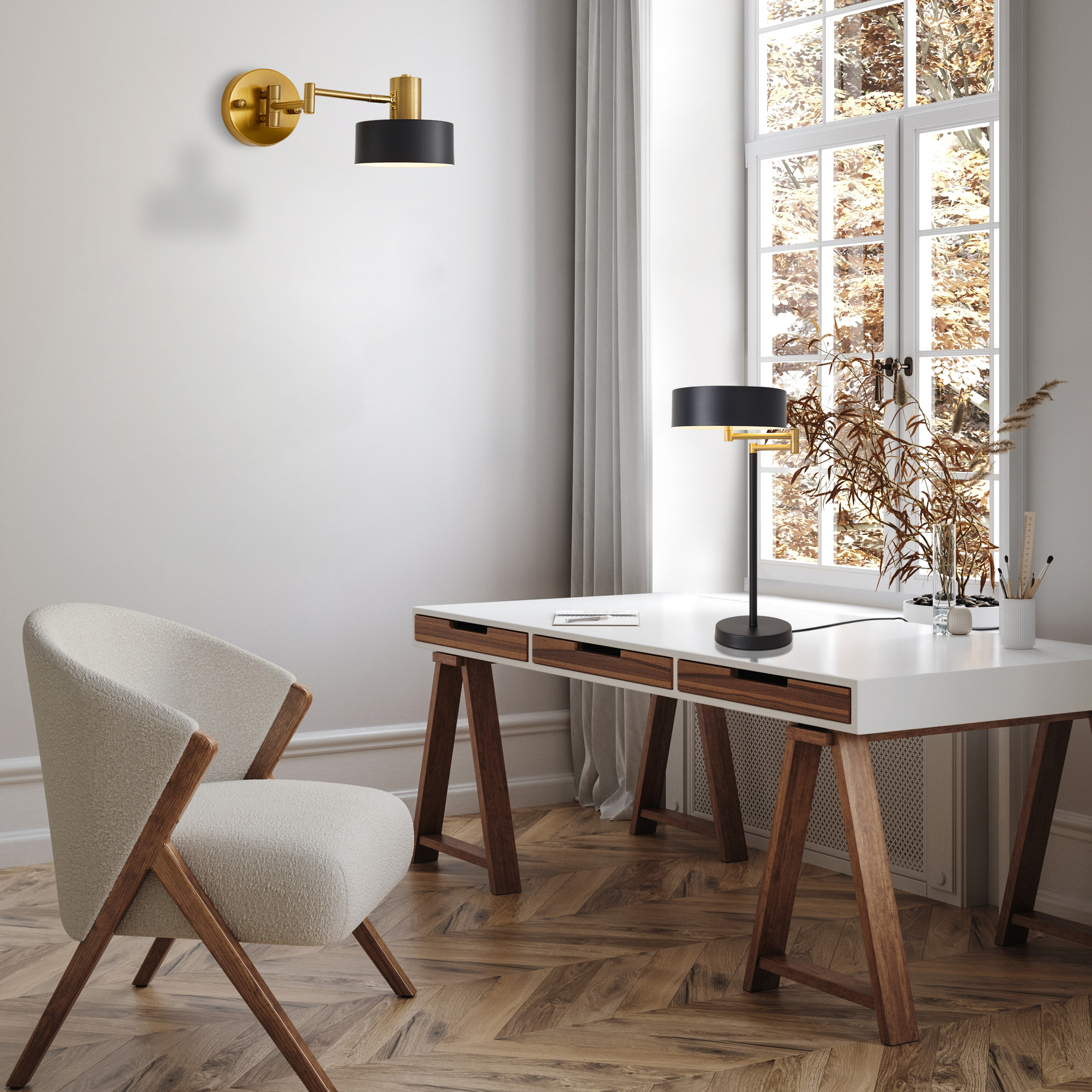 Арматура и плафоны из металла. Цвет арматуры – черный и латунь. Плафоны окрашены в черный оттенок. Актуальный лофтовый дизайн. Источник света – лампа с цоколем E27.