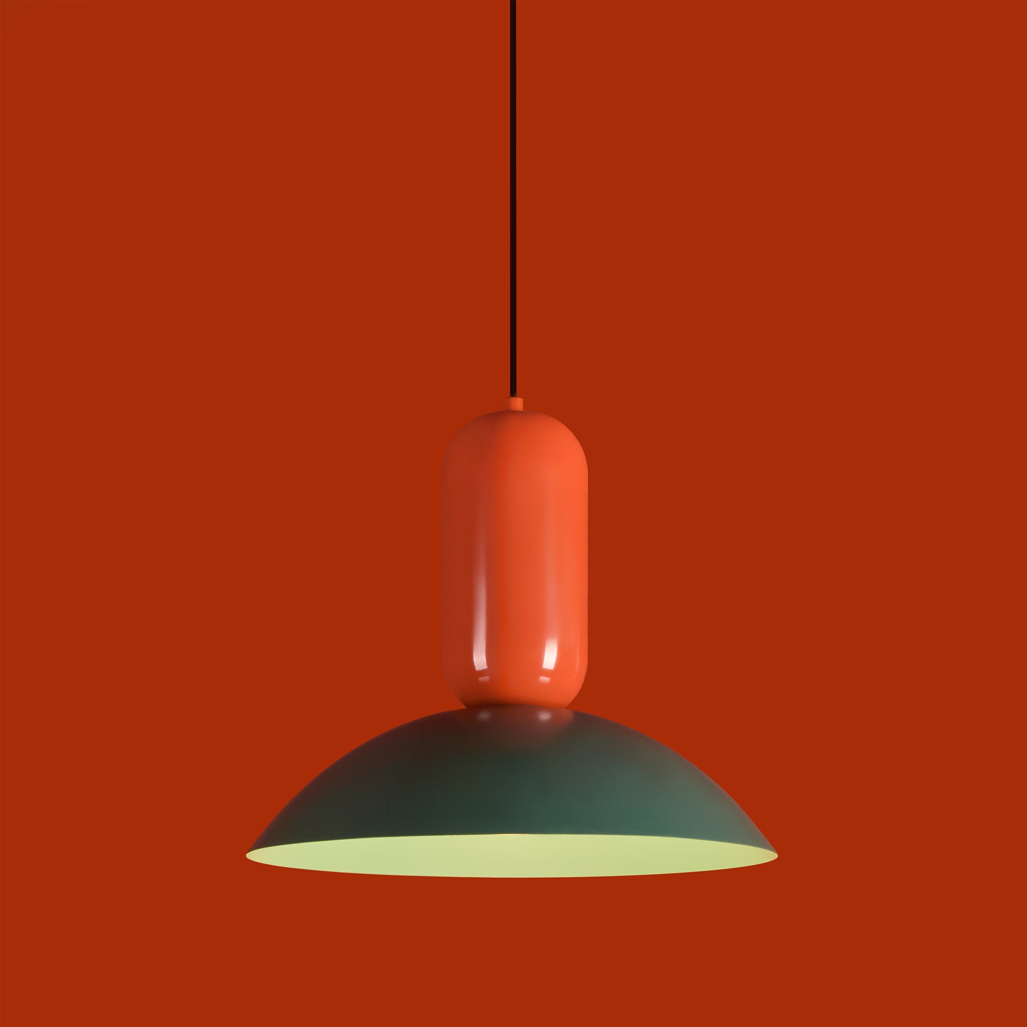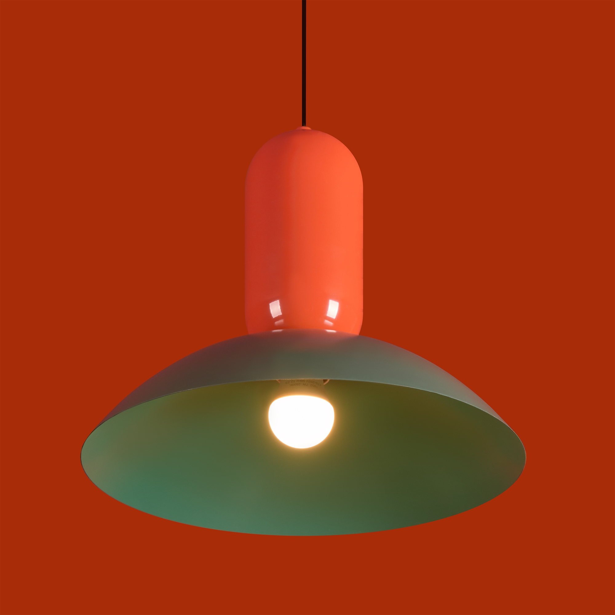 Арматура — чёрный металл.Каждый подвесной светильник окрашен в 2 цвета: серо-бежевый и жемчужно-белый, каменно-серый и белый, белый и каменно-серый. з новинки в сочетниях новых оттенков — чисто красный и мята бирюзовая.
