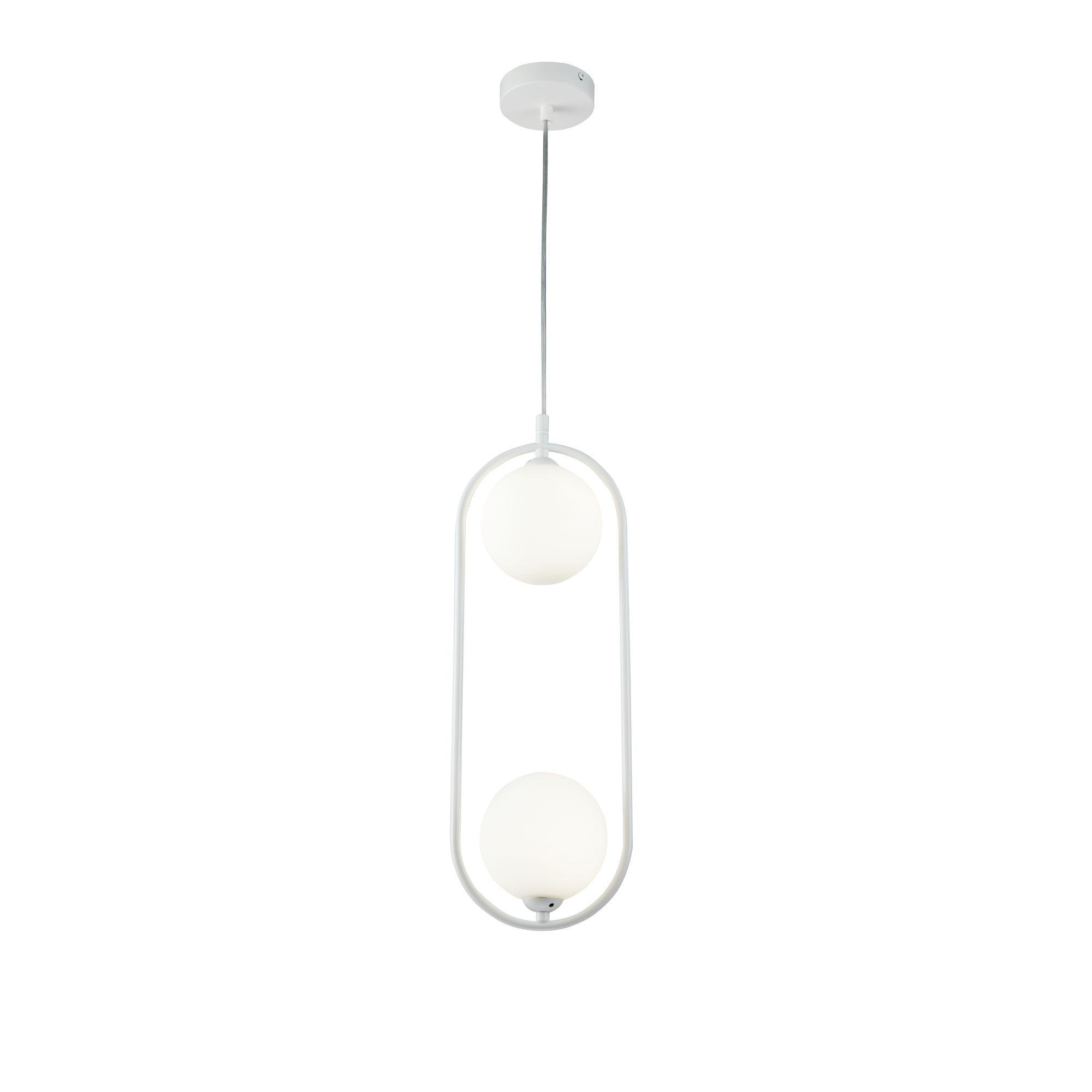 Арматура из металла в трех оттенках: белый, черный, латунь. Плафоны-сферы закреплены на округлом металлическом каркасе. Материал плафонов — выдувное стекло, цвет — белый. Высота подвесных моделей регулируется.