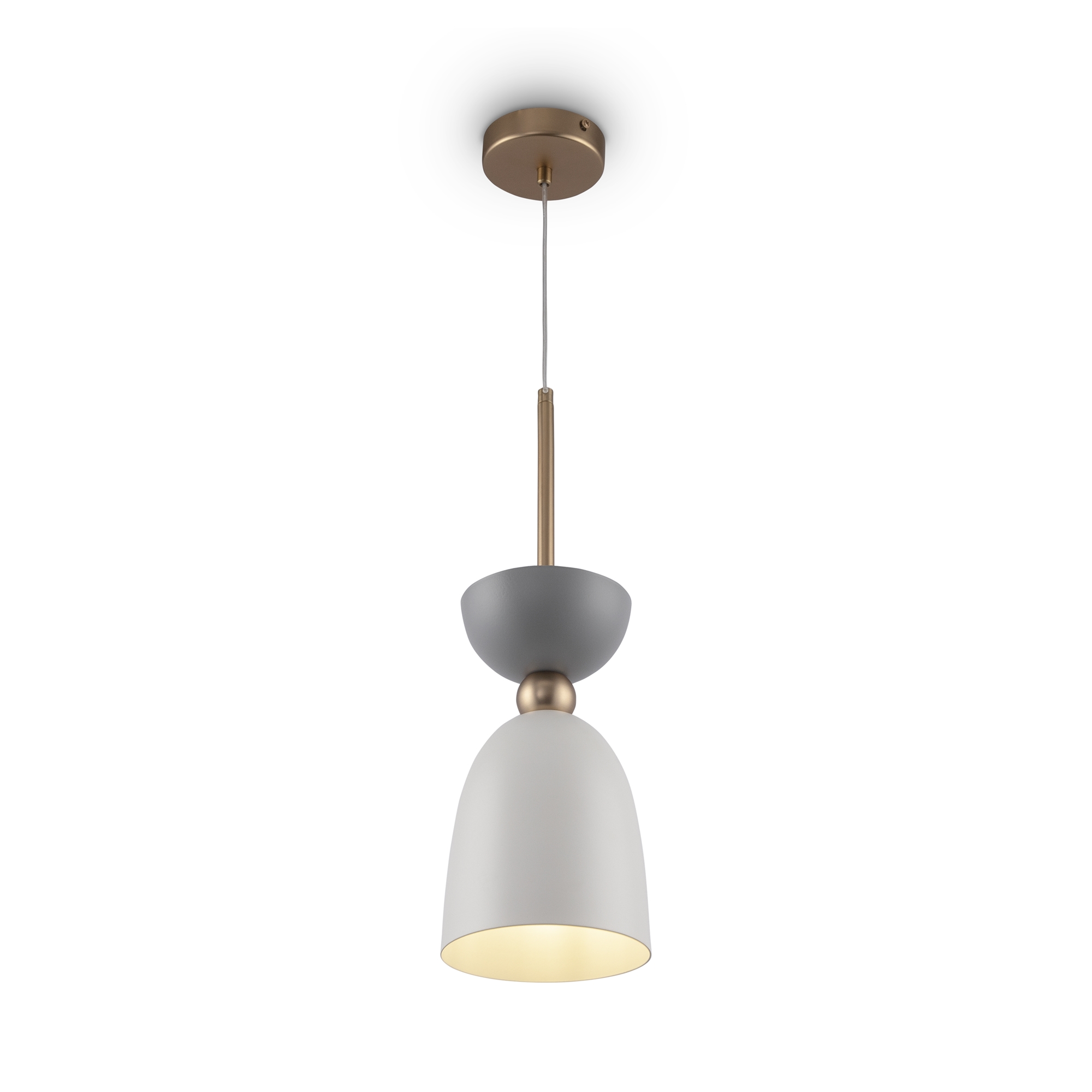 Арматура из металла, оттенки – латунь, белый. Металлические плафоны в двух цветовых решениях: белый + серый, голубой + бирюзовый. Оригинальная форма колокольчика. Поворотный механизм в плафонах для направленной подсветки.