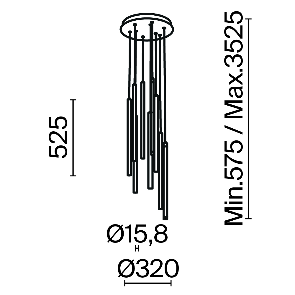 Материал арматуры — алюминий, цвет — черный, латунь. Изящные металлические «струны» в цвет арматуры со встроенным световым модулем прикрыты белым акриловым рассеивателем. Серия для акцентного и дополнительного освещения. Длина подвесных моделей регулируется. LED-источник света. У подвесных светильников есть функция диммирования. Цветовая температура 3000К.