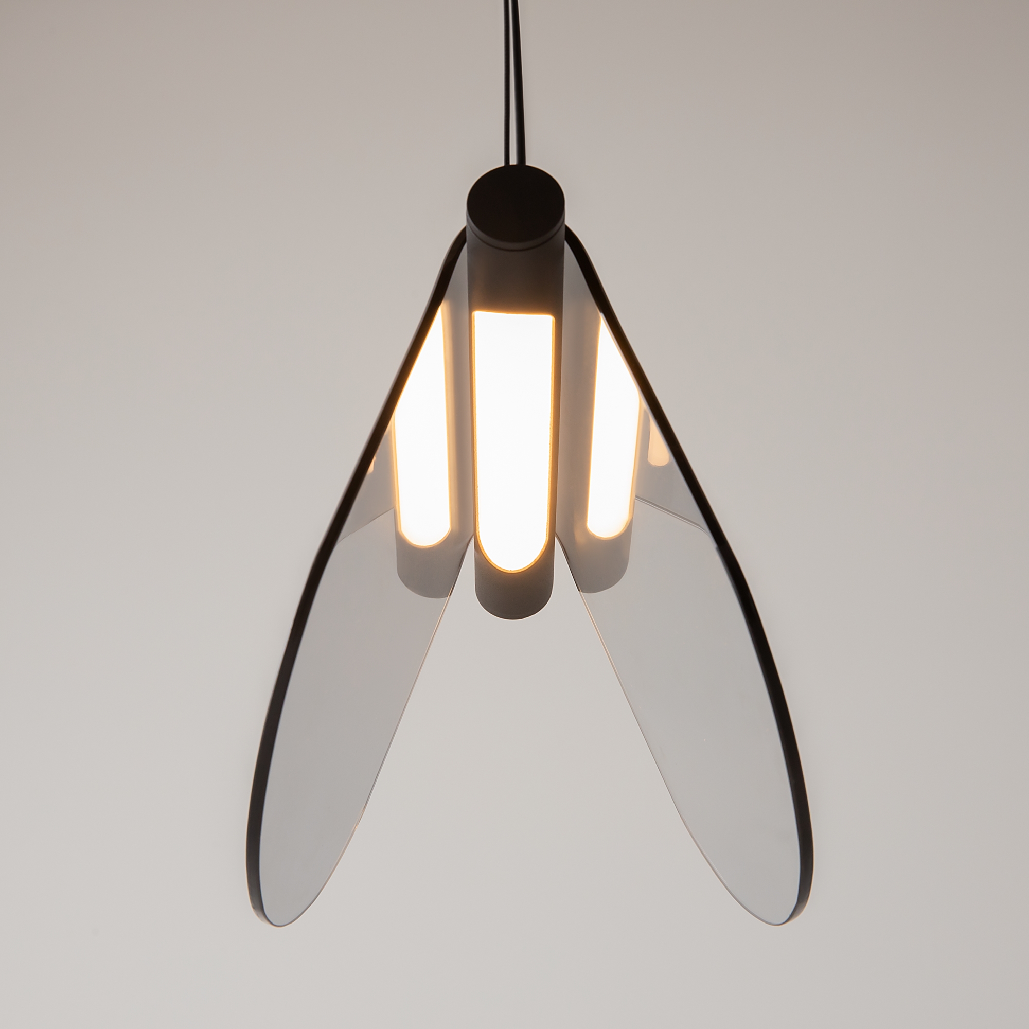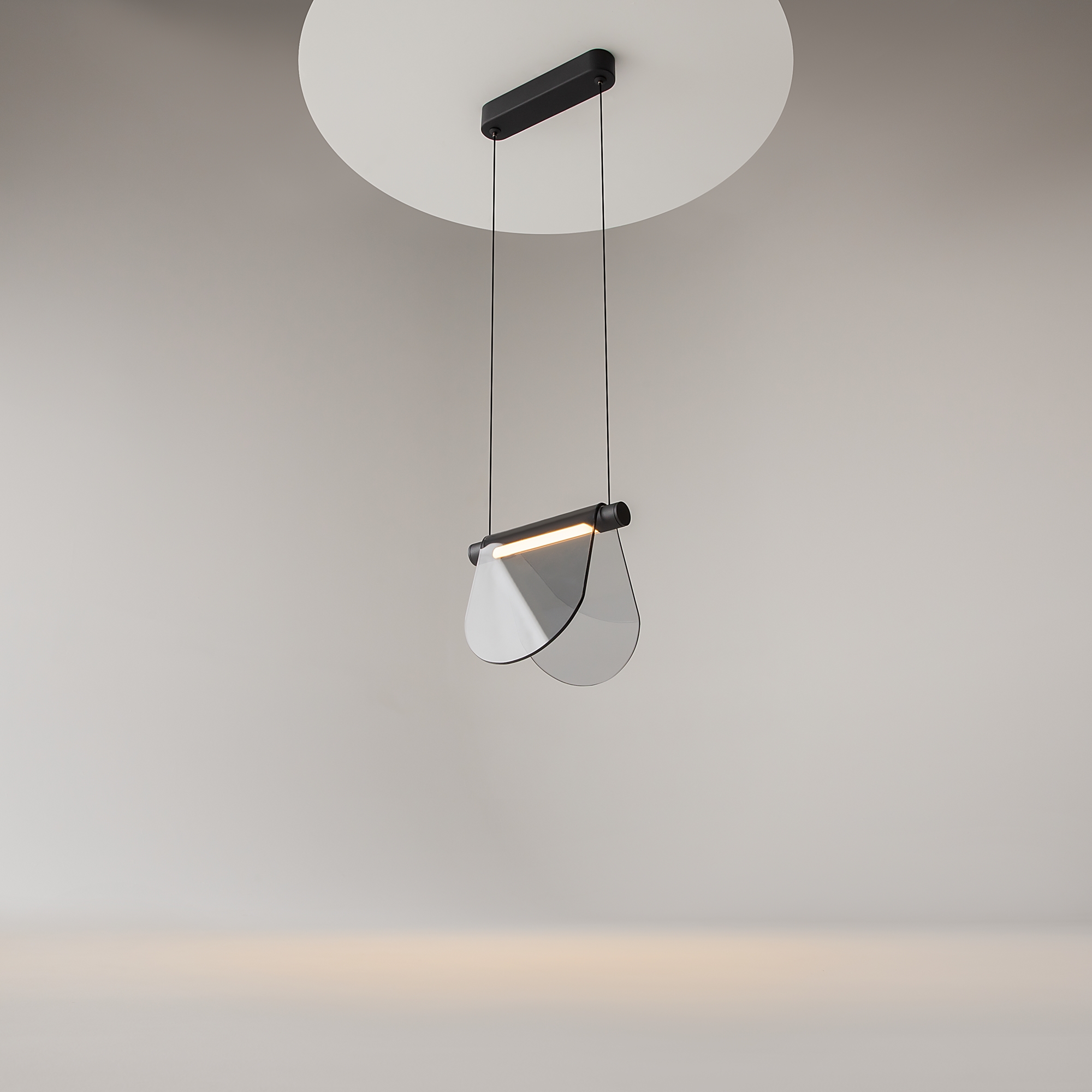 Металлическая арматура черного цвета с антибликовым эффектом sandy. Акцентные плафоны-пластины выполнены из высококачественного тонированного стекла. Благодаря специальной технологии придания цвета стеклу в момент его производства, достигается высокий уровень прозрачности и равномерного окрашивания по всей поверхности плафона. LED-источник света, с температурой цвета 3000К, угол рассеивания 120 градусов, высокий световой поток. Регулируемая длина провода 3 метра – подходит для установки в помещениях с высокими потолками.