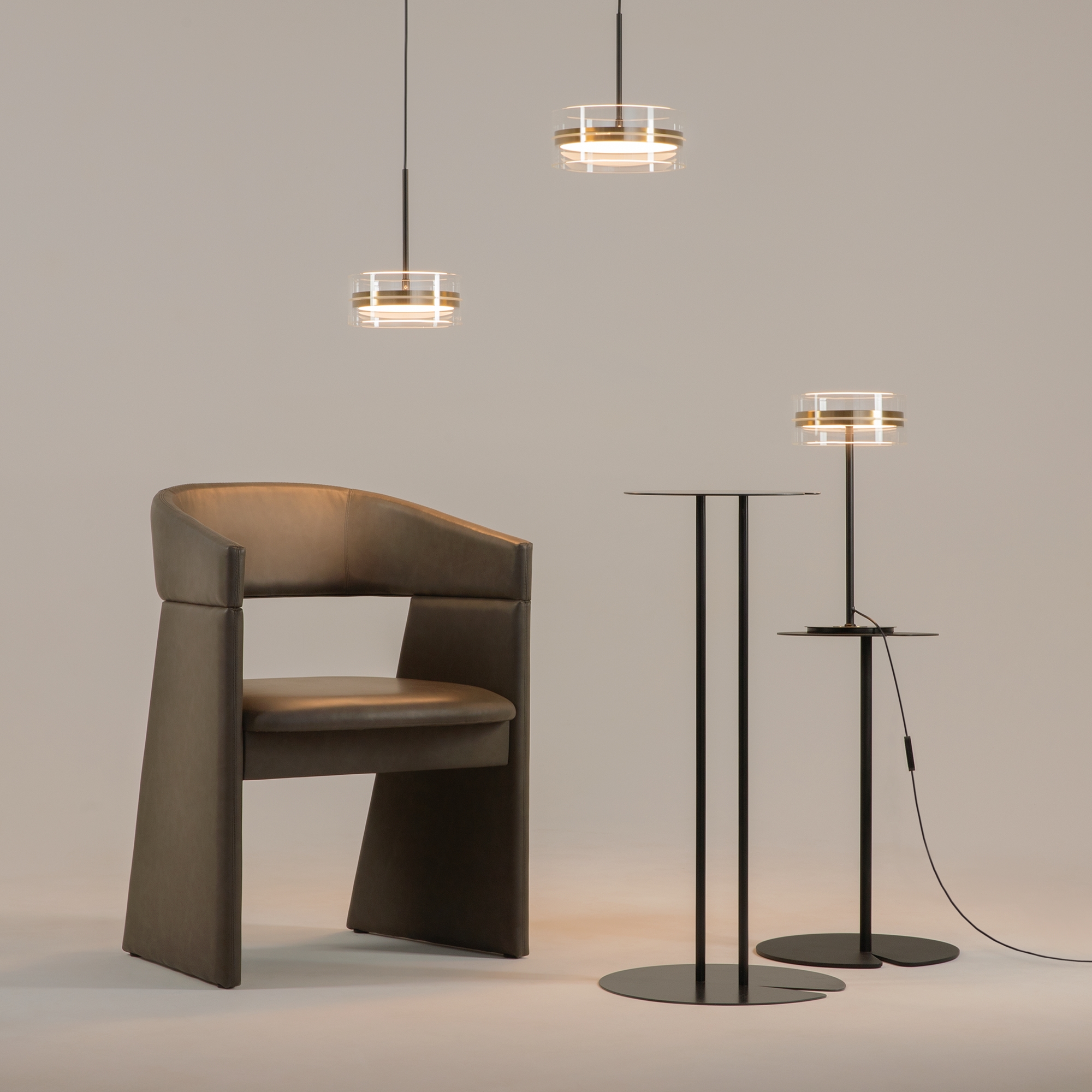 Плафоны подчеркнуто лаконичной формы в виде правильного цилиндра из стекла, дополненные металлической комбинированной черно-латунной арматурой. Источник света: LED. Цветовая температура — 3000К, угол рассеивания — 120 градусов. Провод длиной 3 метра можно регулировать. Светильники серии оснащены функцией диммирования: бесступенчатое управление у настольного светильника, а также 3 ступени регулировки — у торшера, подвесных и потолочного светильников. Светильники серии Dress code отличаются строгим и сдержанным дизайнерским оформлением.