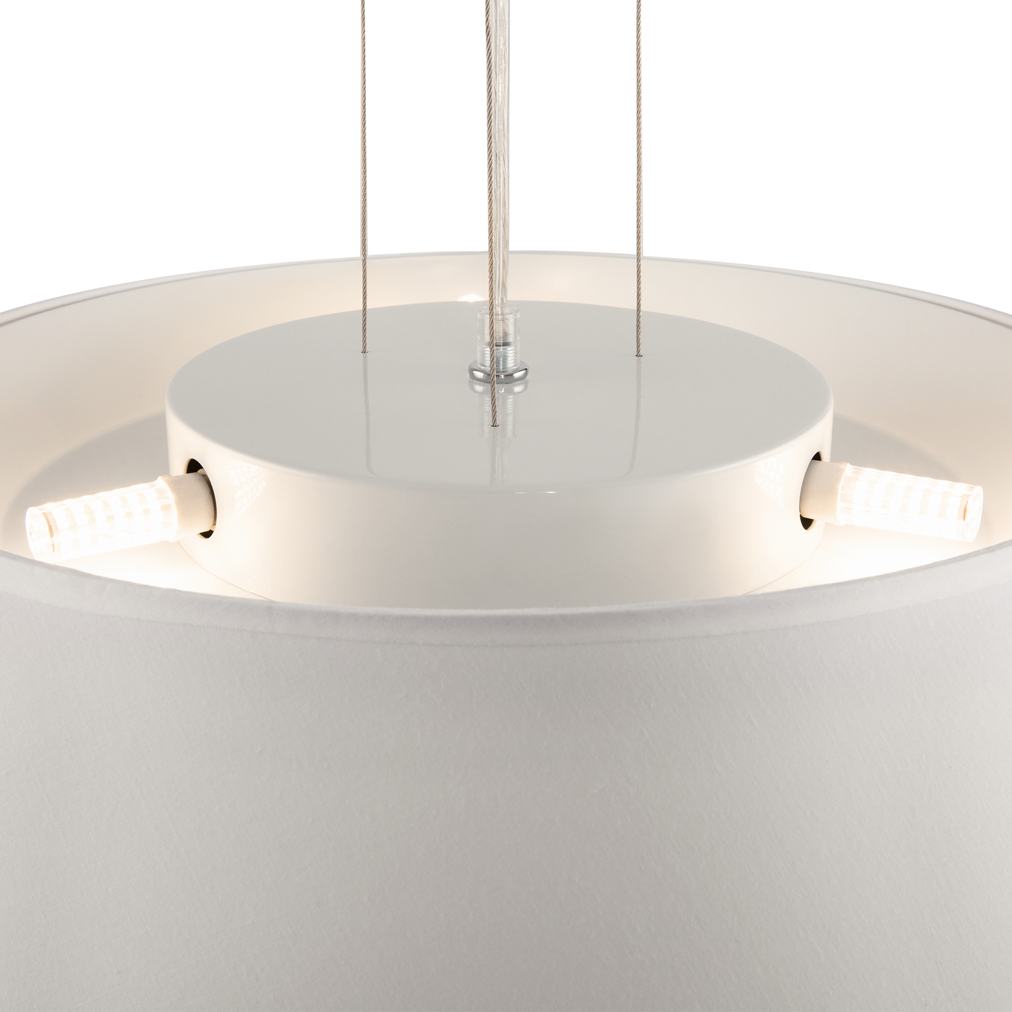 Материал арматуры — металл. Абажур из текстиля и льна, нанесенного на ПВХ. Цвета — белый, темно-серый, серый, белый с черным кантом. Источник света в подвесных моделях скрыт под матовым рассеивателем. Длина провода 3 метра. Торшеры и настольные лампы с регулируемым кронштейном. Лампа с цоколем Е27.