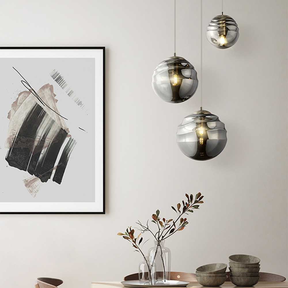Арматура из металла в двух оттенках: латунь и никель. Декоративный плафон оригинальной рельефной формы. Материал плафона – тонированное стекло, оттенки – дымчатый и янтарный. Регулируемая высота.