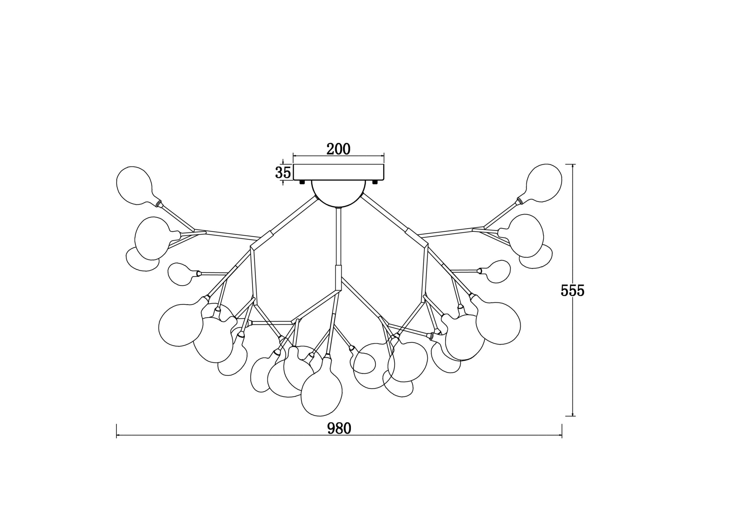 Материал арматуры – металл. Оттенки – черный, белый. Стеклянные плафоны оригинальной формы. Трендовый флористический дизайн. Источник света – лампа G4.