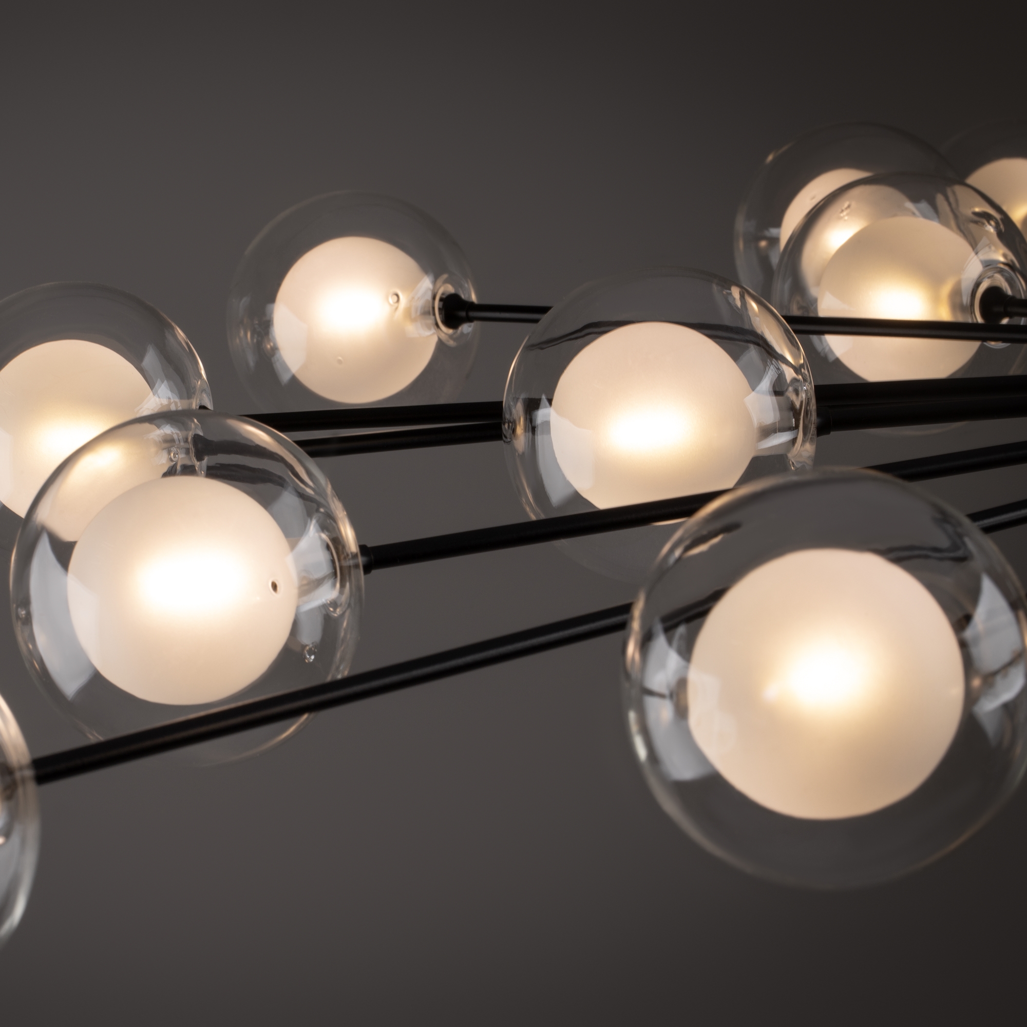 Арматура — металл, цвет — черный, золотой. Плафоны двух видов: из двойного стекла — матового и прозрачного; акриловые с металлическим покрытием половины плафона в цвете латунь. Светильники серии Celebrity отлично подойдут для помещений с не высокими потолками. Источник света — лампа с цоколем G9.