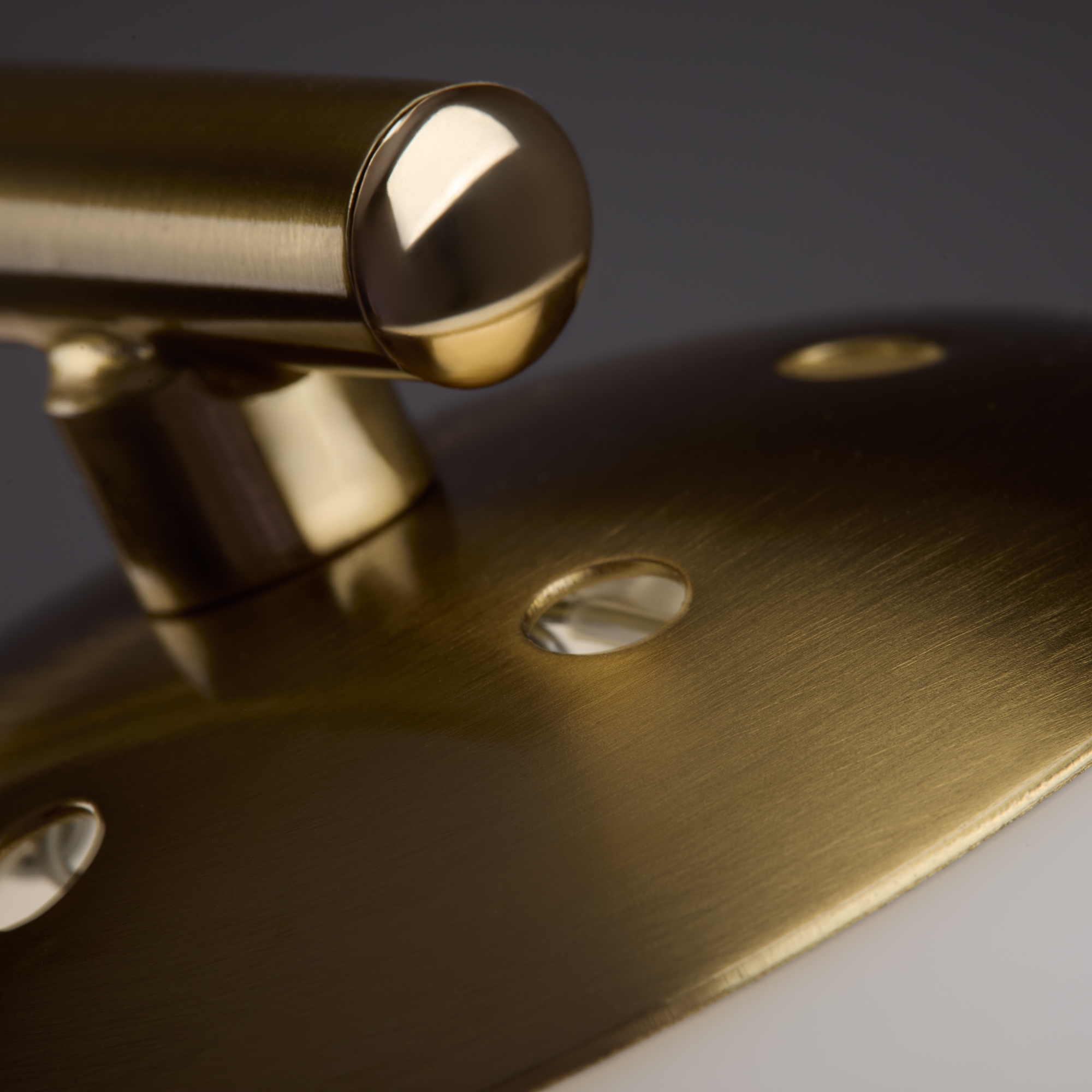 Арматура металл. Цвет латунь. Серия с необычной формой арматуры и раскидистыми плафонами. Белые плафоны в форме шара. Источник света лампа. Цоколь E14.