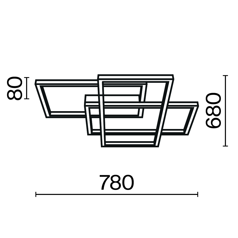 Металлическая арматура, оттенки — белый и черный. Матовый акрил скрывает интегрированные LED-источники. Геометричный дизайн: конструкция состоит из наложенных друг на друга прямоугольников.