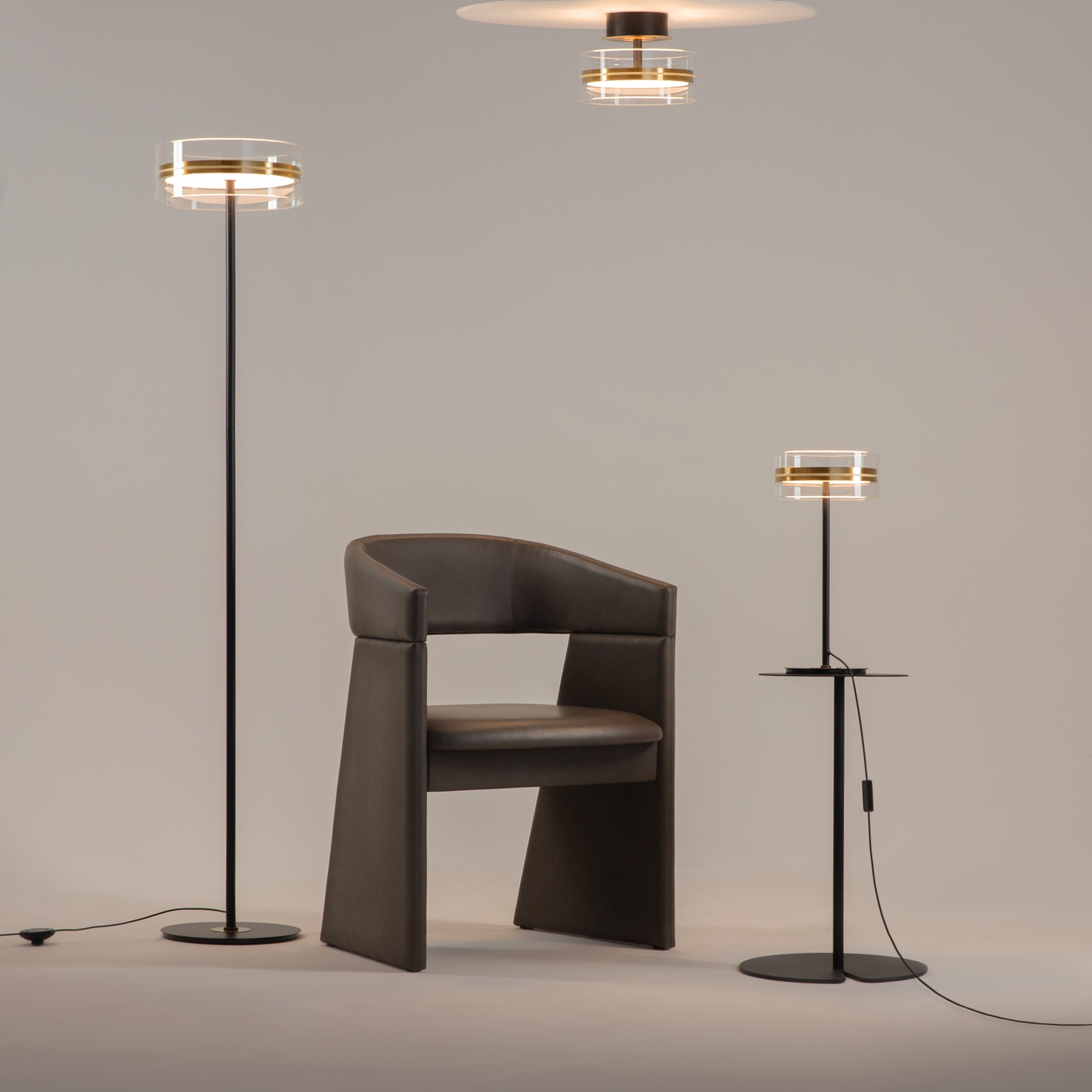 Плафоны подчеркнуто лаконичной формы в виде правильного цилиндра из стекла, дополненные металлической комбинированной черно-латунной арматурой. Источник света: LED. Цветовая температура — 3000К, угол рассеивания — 120 градусов. Провод длиной 3 метра можно регулировать. Светильники серии оснащены функцией диммирования: бесступенчатое управление у настольного светильника, а также 3 ступени регулировки — у торшера, подвесных и потолочного светильников. Светильники серии Dress code отличаются строгим и сдержанным дизайнерским оформлением.