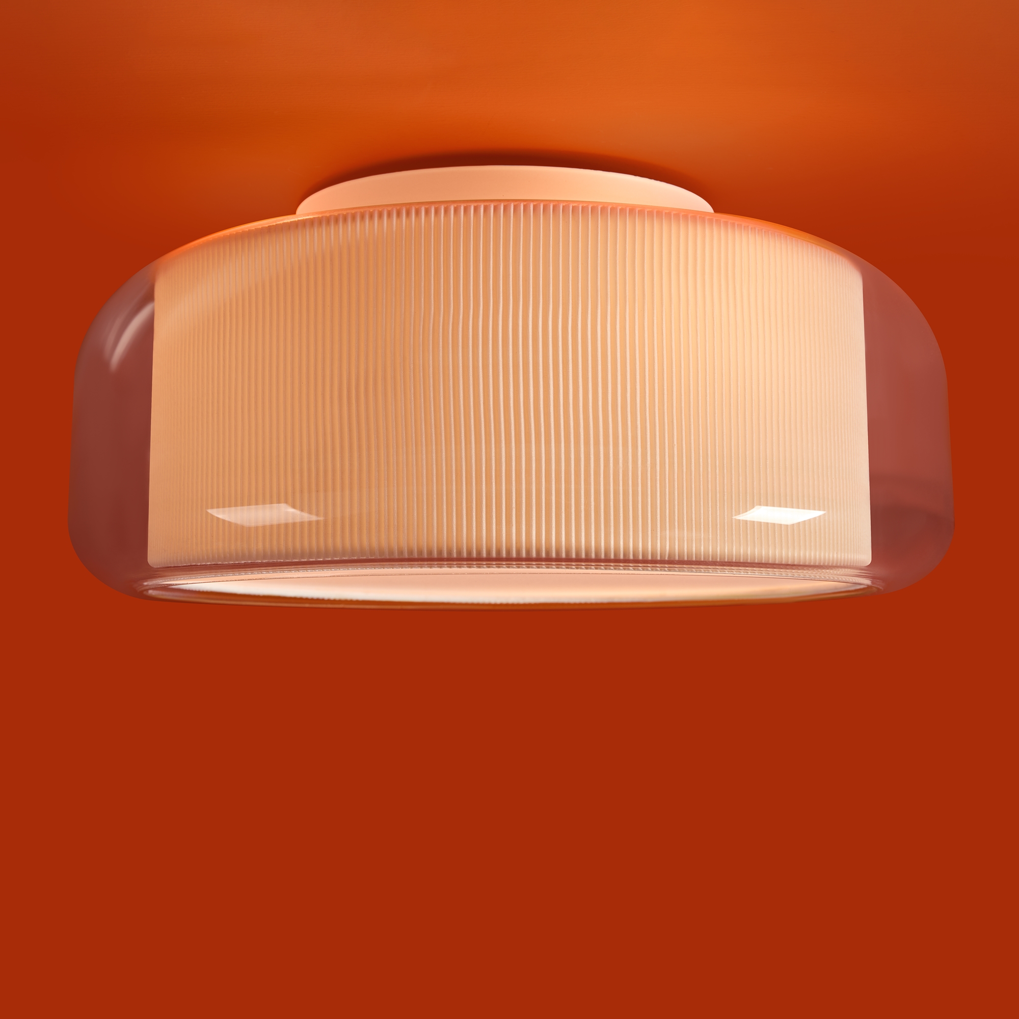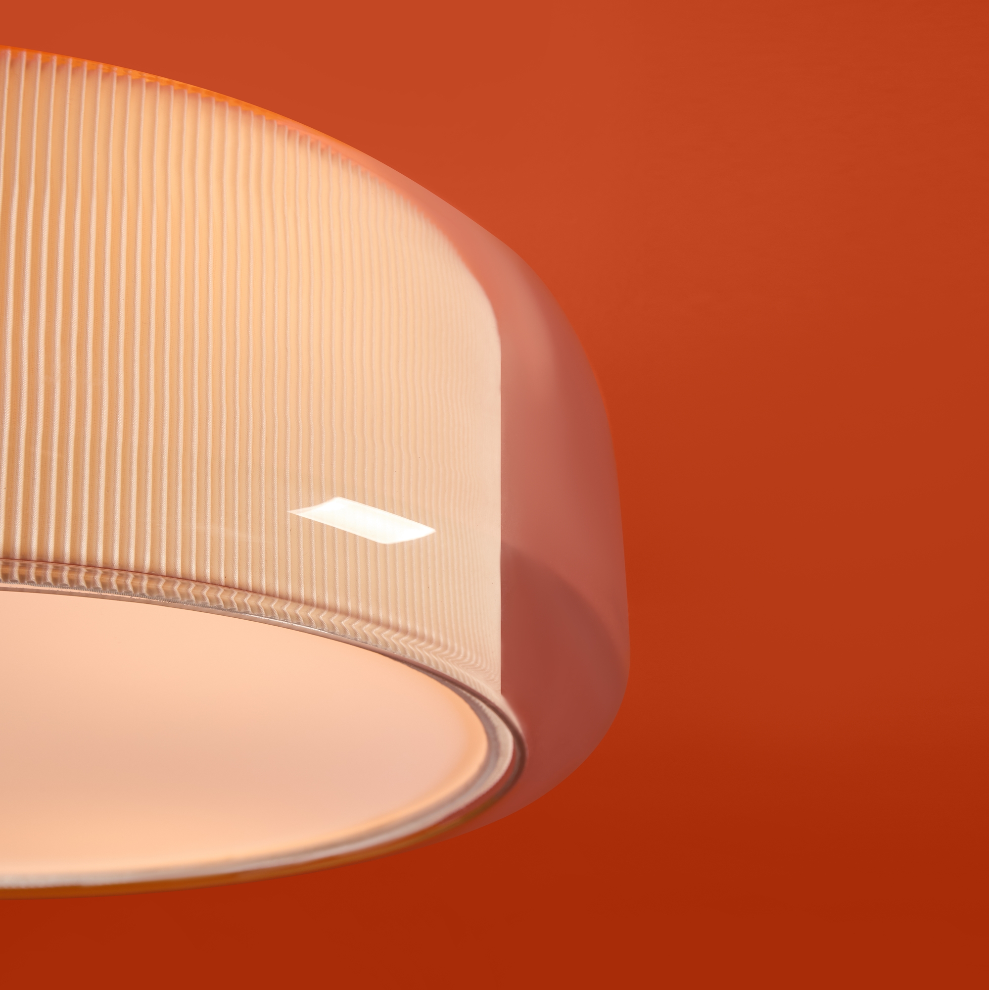 Сочетание стекла и тканевой плиссировки для мягкого рассеянного света. Лампы E27 (в комлекте). Особенность плафонов — их многослойность. В серии представлены подвесной, потолочные и настенный светильники.