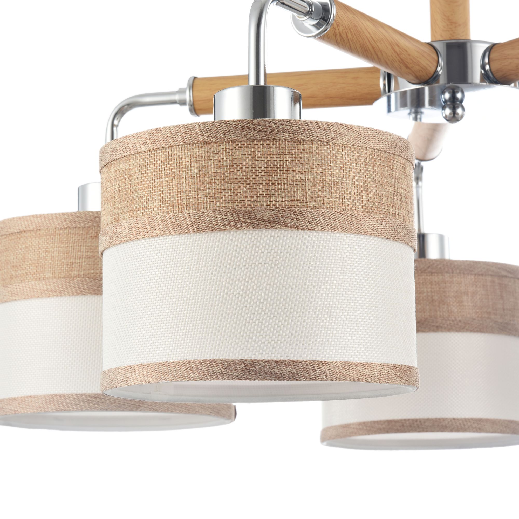 Двухцветные абажуры, сделанные из мешковины, сочетаются с древесной арматурой. Благодаря большому ассортименту изделий серии Helen легко выбрать светильник как для просторных помещений, так и для небольших.