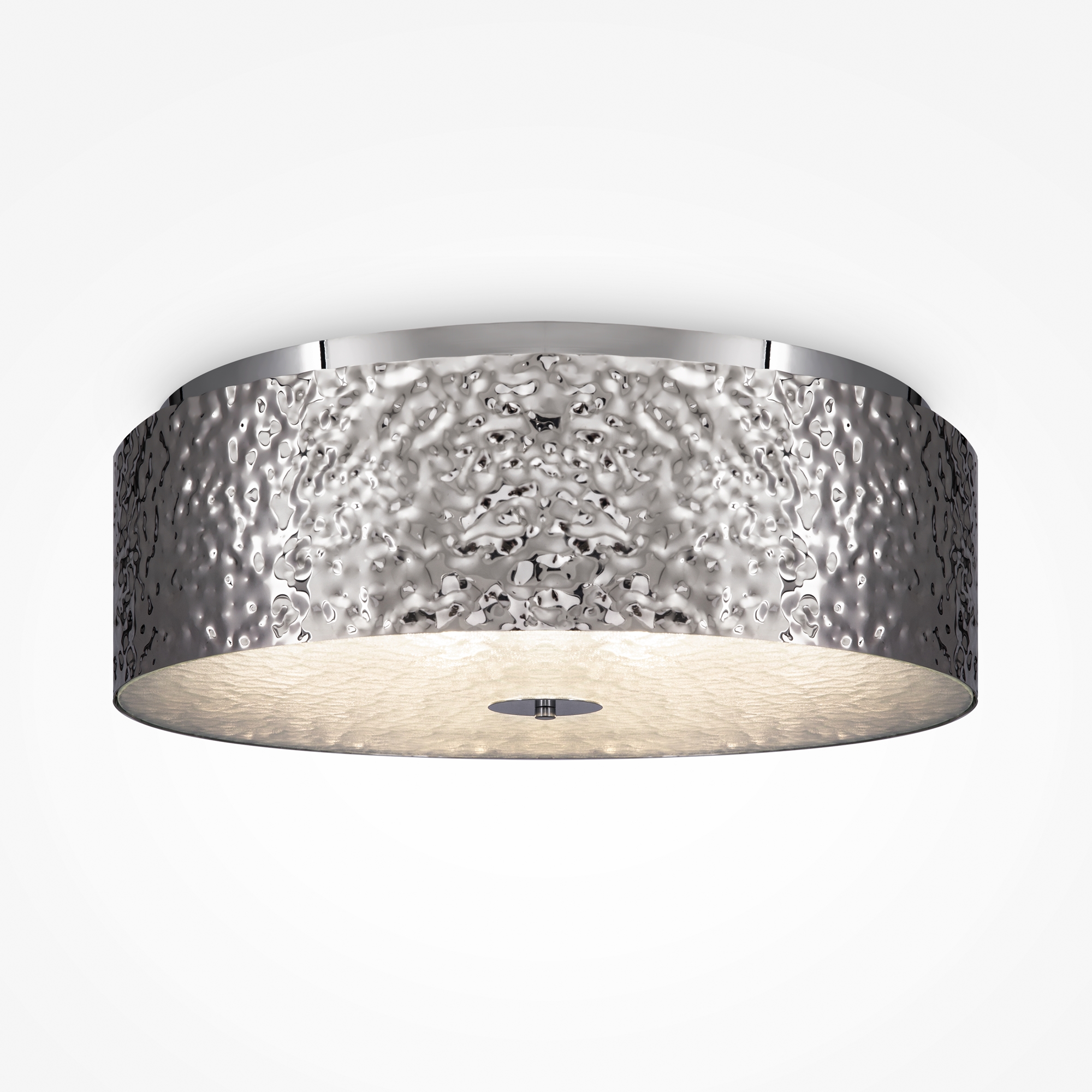 Арматура – металл в цветах хром и золото. Фактурный рисунок нанесен посредством чеканки. Стекло с рельефной поверхностью скрывает источники света. Декора тивный эффект «рябь на воде». Источник света — лампа с цоколем Е14.