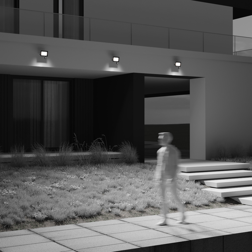 Прожекторы для освещения экстерьеров, рабочих пространств, производственных и промышленных помещений. Материал корпуса — алюминий. Цвет — чёрный. LED-источник света. Два варианта цветовой температуры — 4000К и 6500К. Пять размеров с соответствующими вариантами мощности — 10, 30, 50 Вт с датчиком движения. Модели 100 и 150 Вт без датчиков движения. Высокая степень защиты от пыли и влаги IP65.