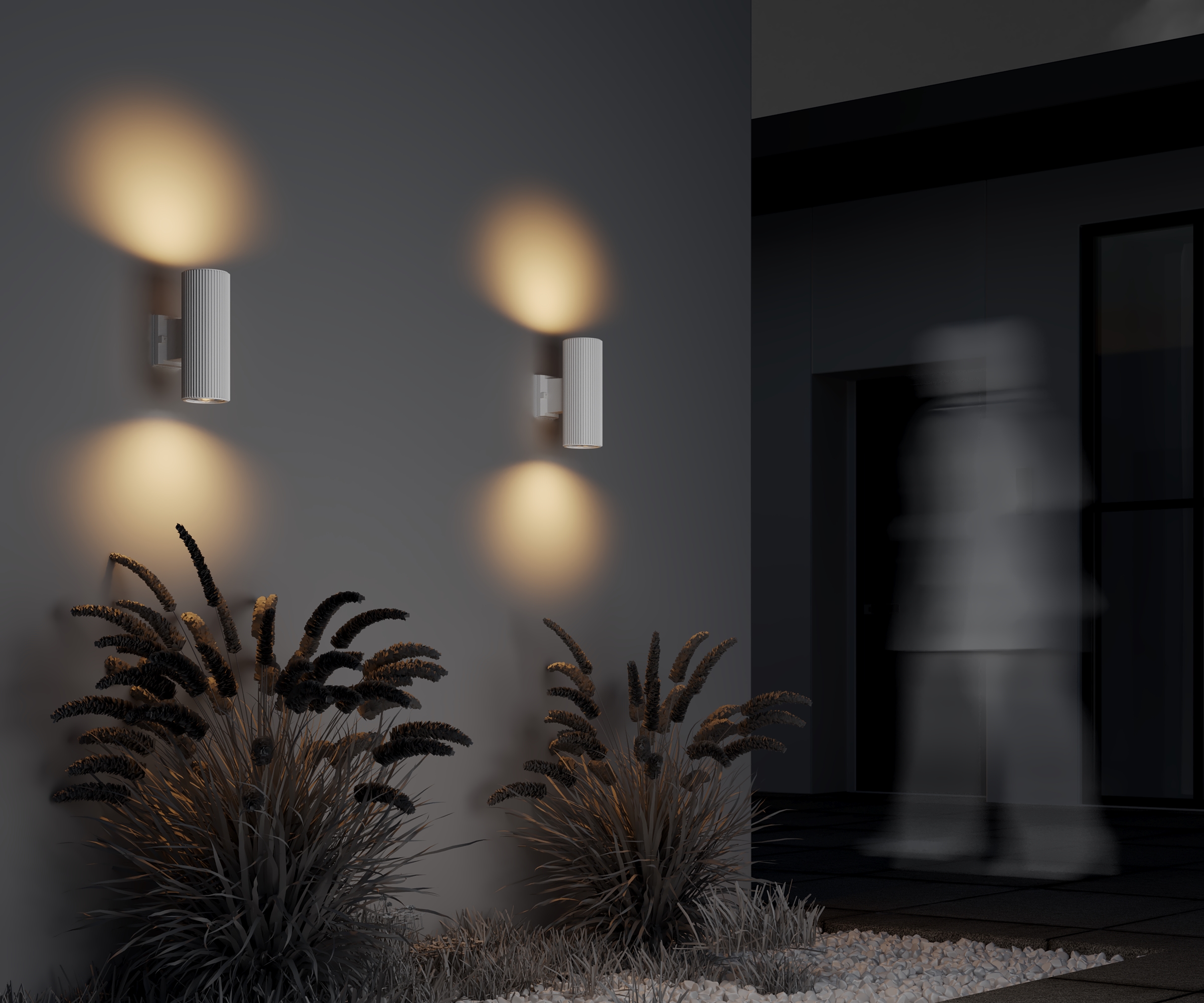 Фактурные настенные светильники для архитектурной подсветки. Металлический корпус устойчив к коррозии. IP 54 обеспечивает высокий уровень защиты от пыли и влаги. Комплектация светильников позволяет настраивать двухсторонний и однонаправленный световой поток. В серии представлены модели, рассчитанные на 1 и 2 лампы (Е27). Три оттенка на выбор: черный, серый, белый.