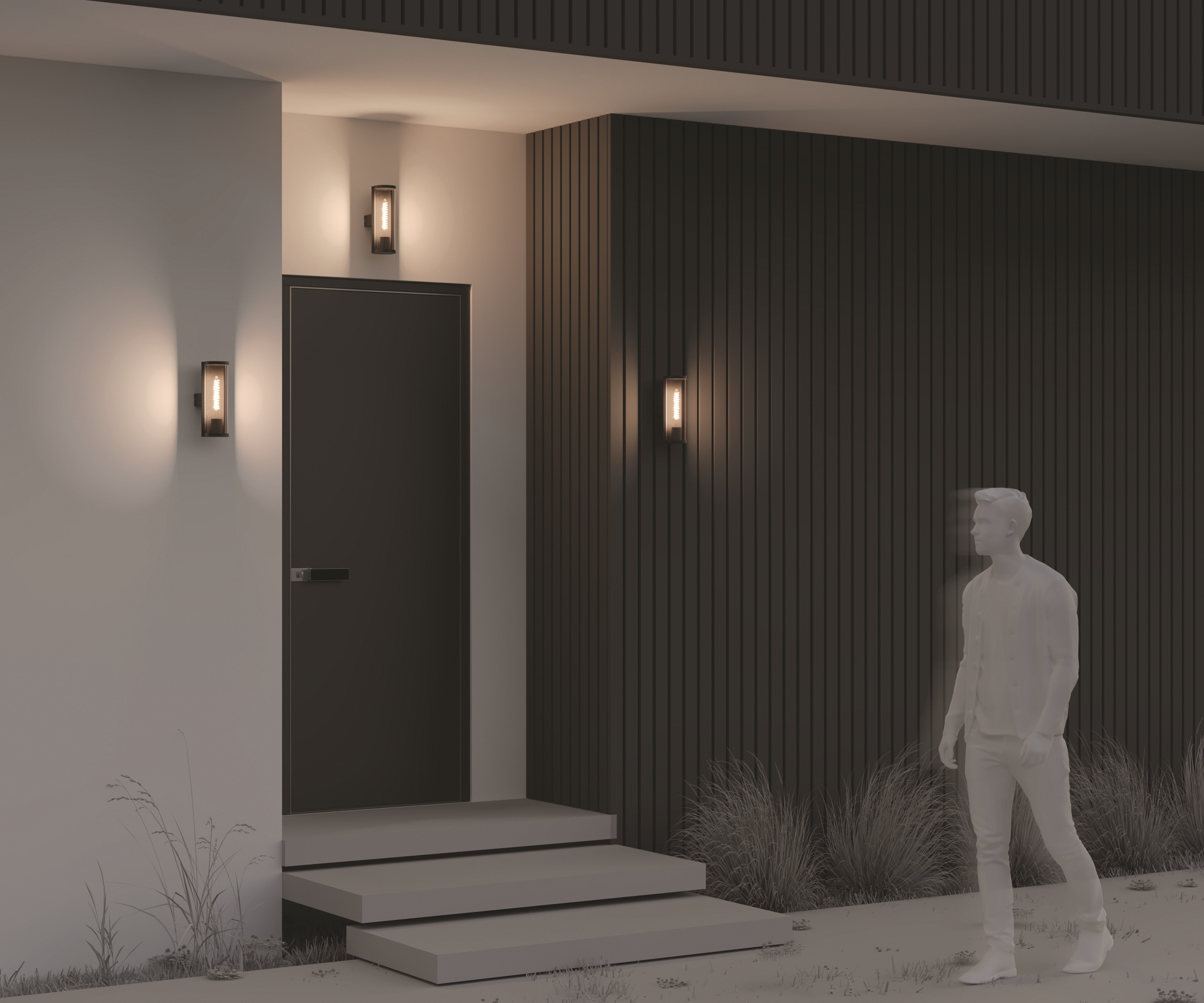 Алюминиевый корпус, цвет — графит. Рассеиватель из прочного тонированного пластика в 2-х формах: квадратный и округлый. Идеален для экстерьеров в стиле лофт и освещения входных зон. Источник света — лампа с цоколем Е27. Степень защиты — IP65.