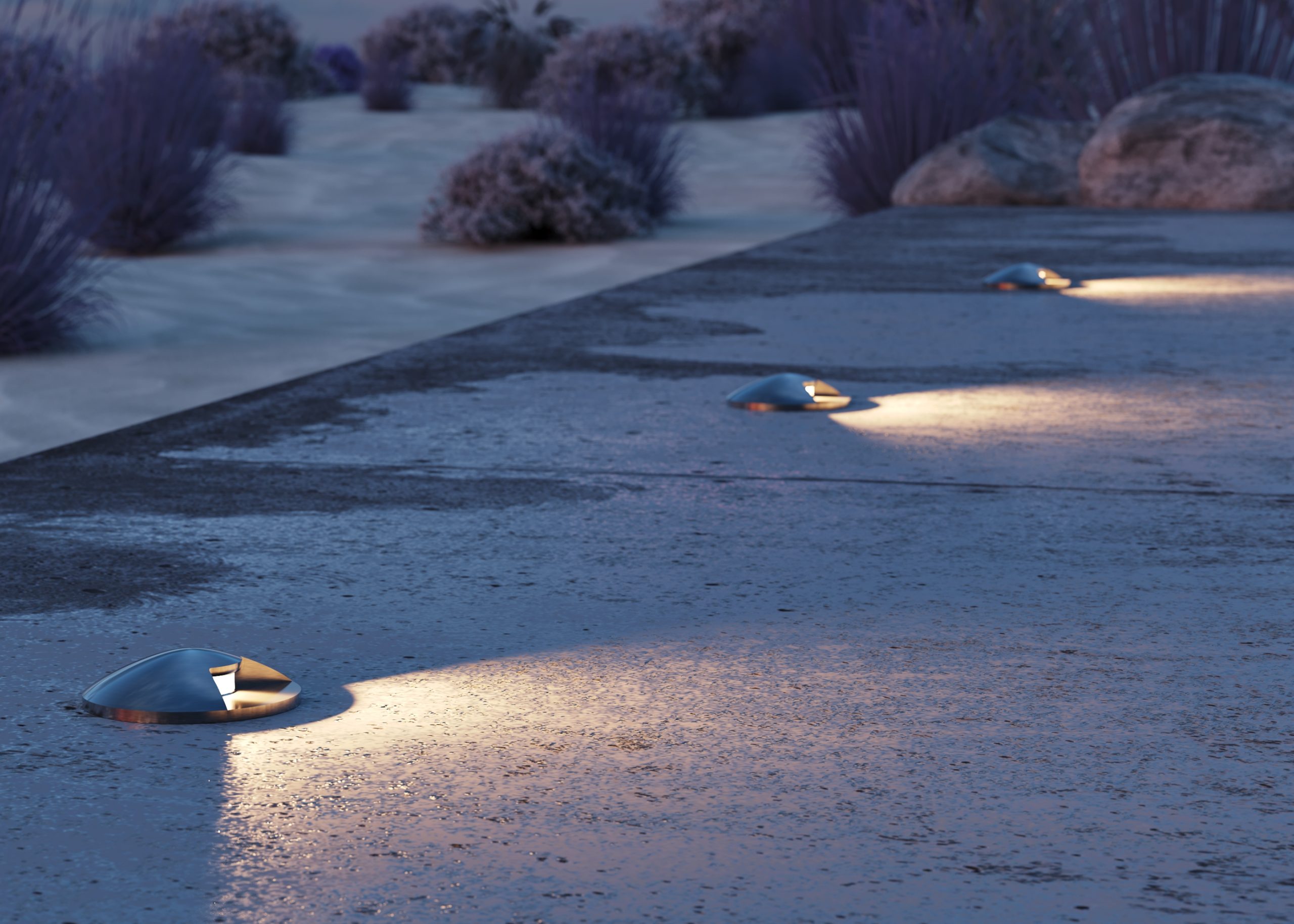 Металлический корпус из нержавеющей стали. Цвет — серебристый. Три дизайна корпуса — три варианта свечения. Высокая степень защиты IP67 позволяет использовать во влажных зонах. Подходят для маркерной подсветки дорожек и лестниц.