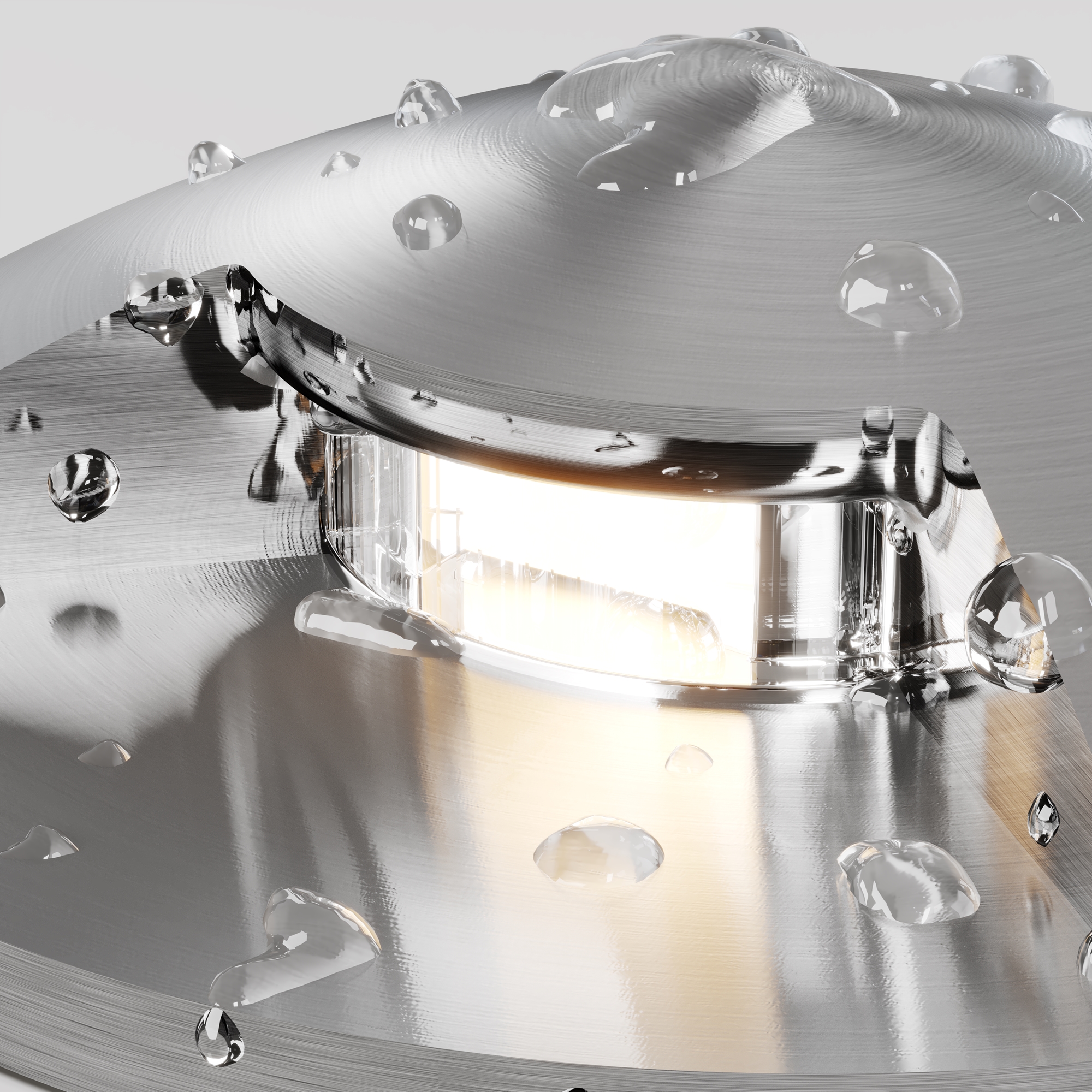Металлический корпус из нержавеющей стали. Цвет — серебристый. Три дизайна корпуса — три варианта свечения. Высокая степень защиты IP67 позволяет использовать во влажных зонах. Подходят для маркерной подсветки дорожек и лестниц.