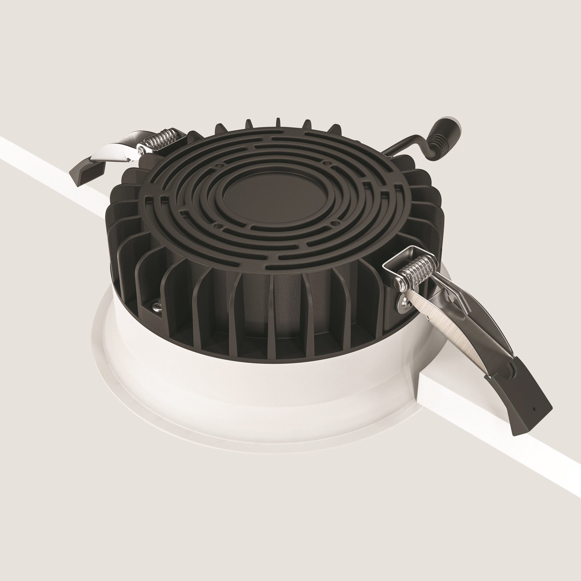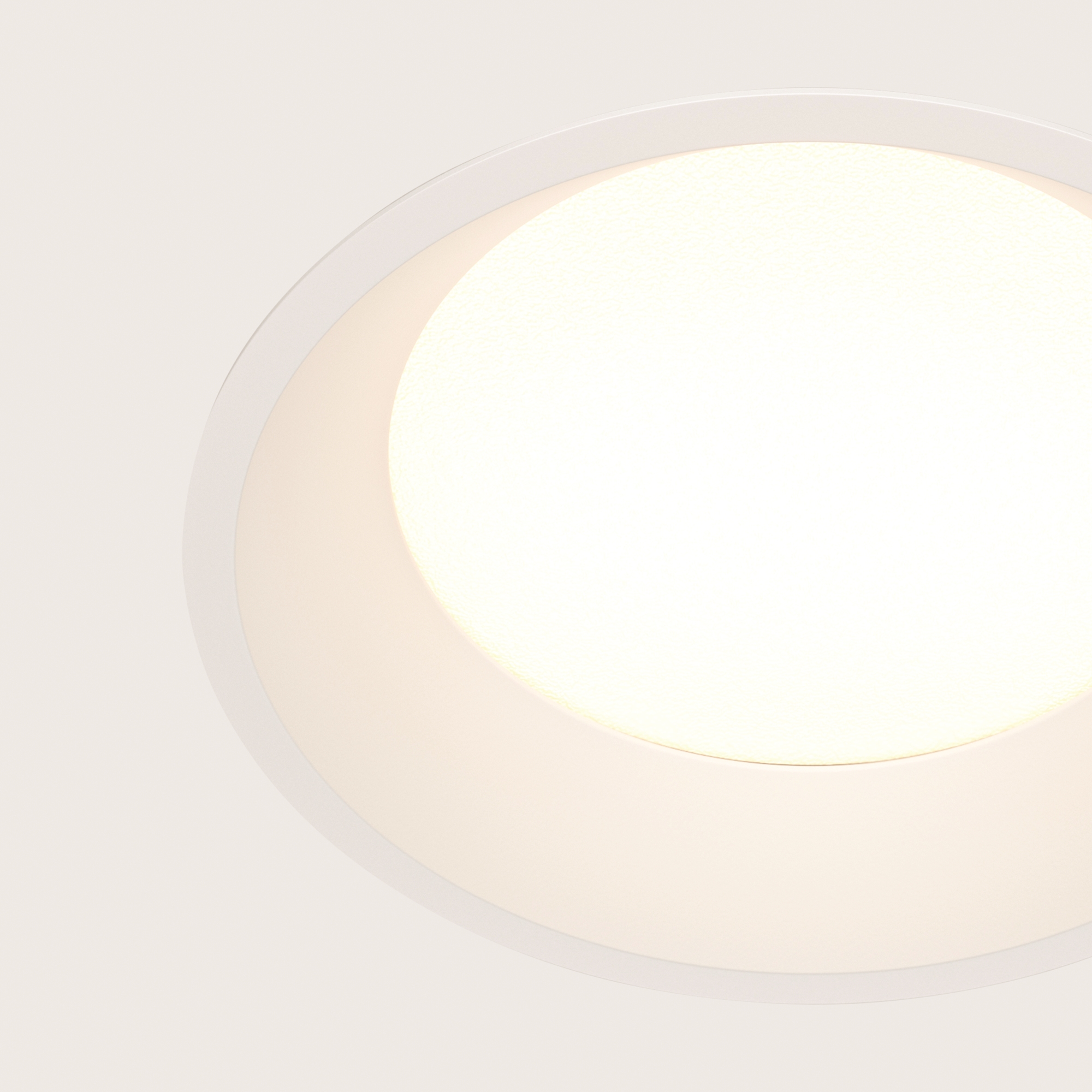Материал арматуры — алюминий и пластик. Организация основного освещения в интерьере. Высокий коэффициент цветопередачи >90. Качественное отображение цветов. Утопленный матовый рассеиватель. Переключатель цветовой температуры. Повышенная степень пылевлагозащиты IP 44.