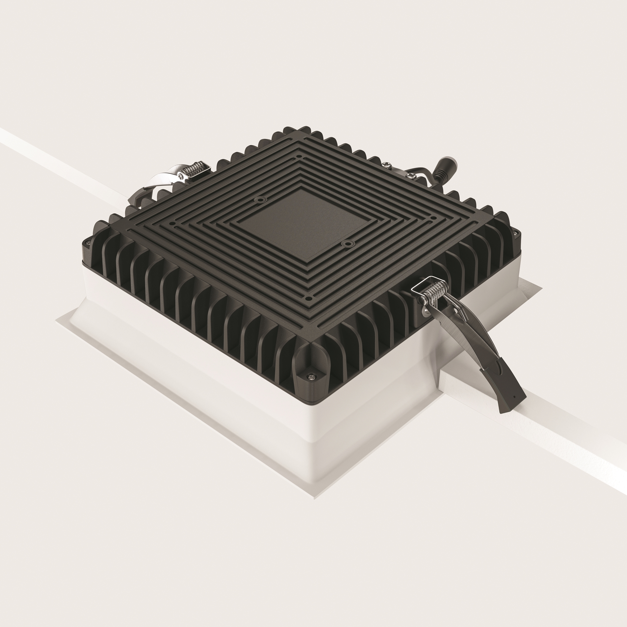 Материал арматуры — алюминий и пластик. Организация основного освещения в интерьере. Высокий коэффициент цветопередачи >90. Качественное отображение цветов. Утопленный матовый рассеиватель. Переключатель цветовой температуры. Повышенная степень пылевлагозащиты IP 44.