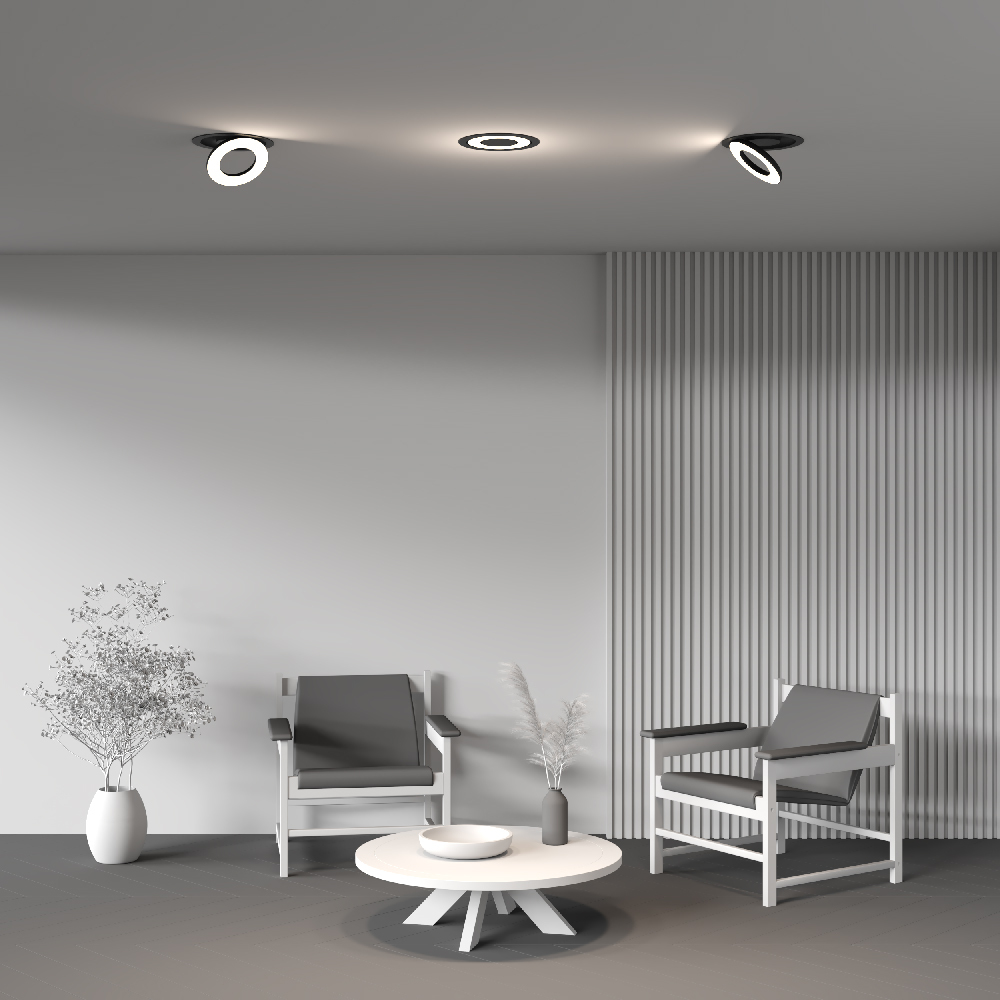 Первая дизайнерская серия встраиваемых потолочных светильников Maytoni​​. Вдохновение образом Гало. Материал корпуса — алюминий; цвета — черный, белый. Широкий угол рассеивания 100°. Цветовая температура 2700, 3000 и 4000К в зависимости от модели. Поворотный механизм 90° и 355° по горизонтали и вертикали. Белый матовый рассеиватель. Мягкое освещение. Компактная глубина встройки. Совместимость с источниками питания Dali и Triac. Эксклюзивный дизайн.