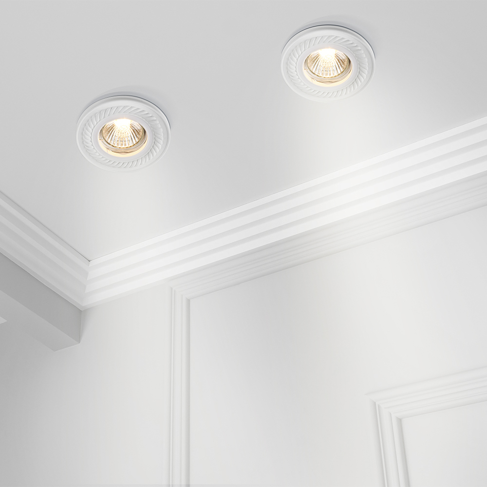Материал – белый гипс с возможностью окрашивания. Декор – вылепленный орнамент